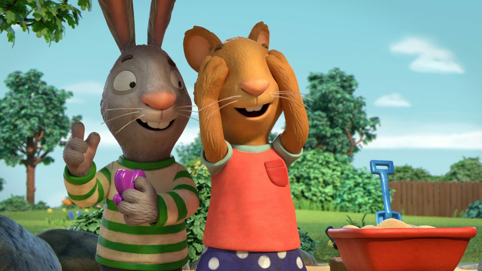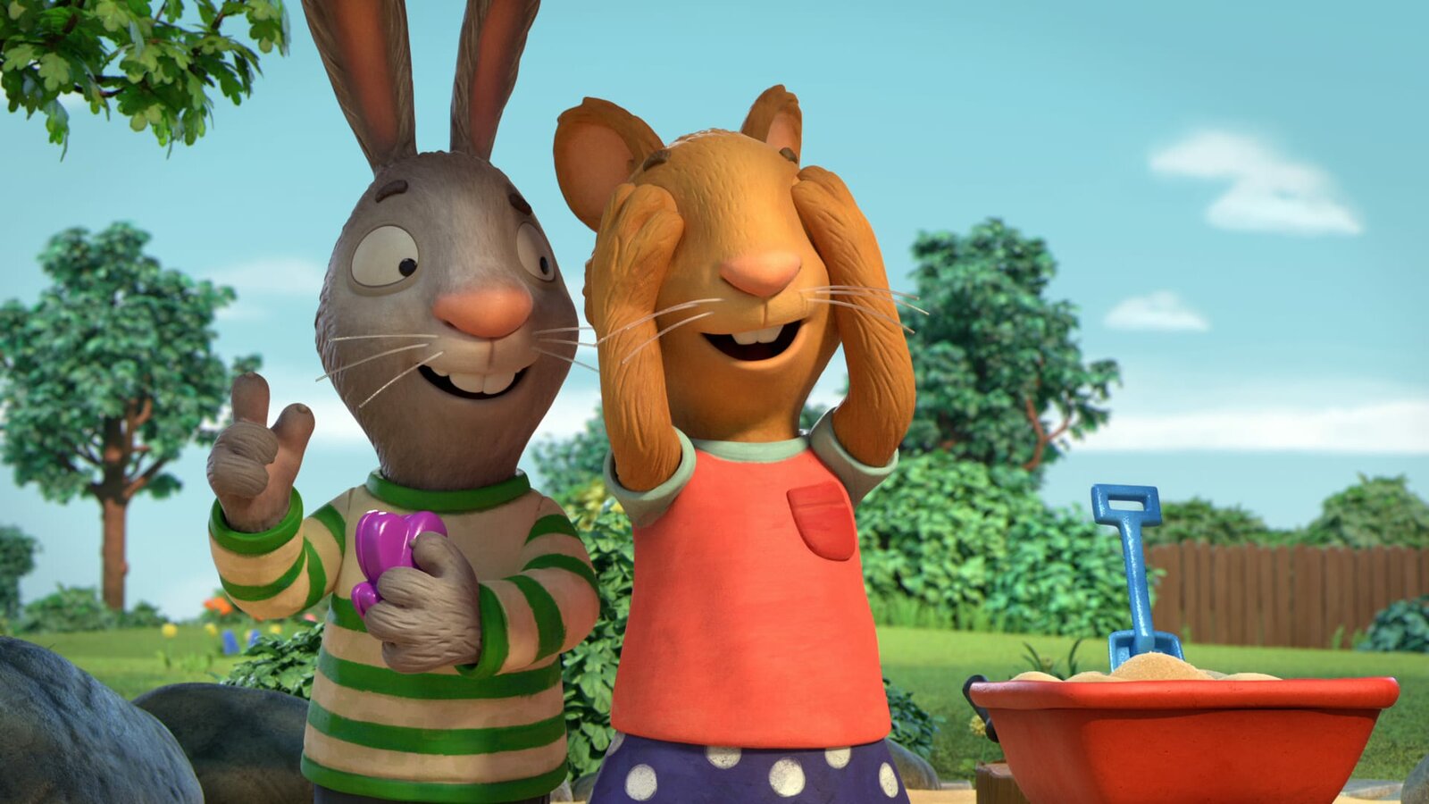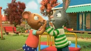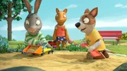 Sandkasten-FreundeEigentlich wollte Posy mit Pip spielen, aber dann kommt Zac mit seinem Bagger dazwischen.Bild: © ZDF und (c) Magic Light Pictures LTD 2021./(c) Magic Light Pictures LTD 202