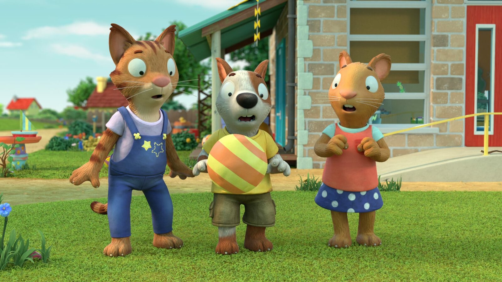 SchlafanzugtagPip versucht, seine Freundin Posy zum Ballspielen draußen zu überreden.Bild: © ZDF und (c) Magic Light Pictures LTD 2021.