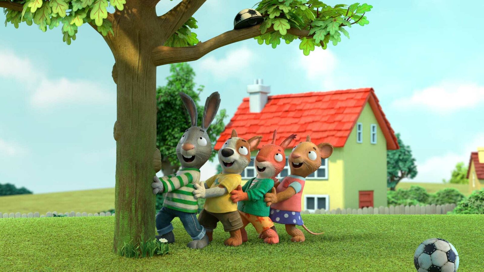 Das ist kein Ball!Sieht aus wie ein Fußball, ist aber eine Tasche, die im Baum hängt.Bild: © ZDF und (c) Magic Light Pictures LTD 2021.