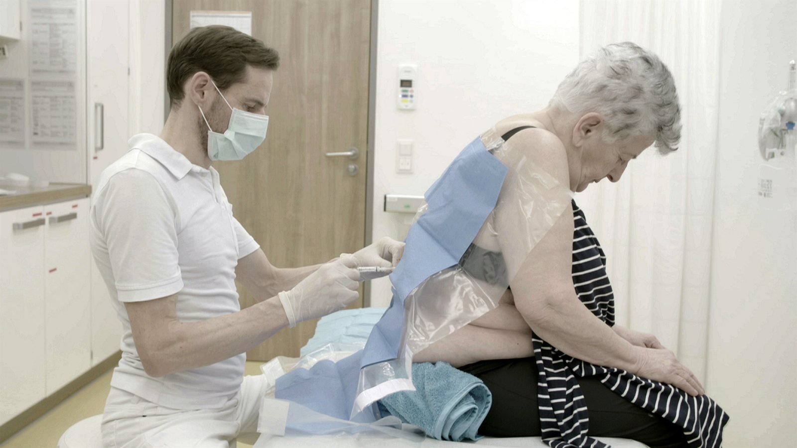 Schmerz-los - Wie neue Therapien Linderung bringenKay Udo Schwarzer von der Schmerzklinik Rüdersdorf führt eine PDA durch.Bild: © ZDF und Franca Leyendecker.