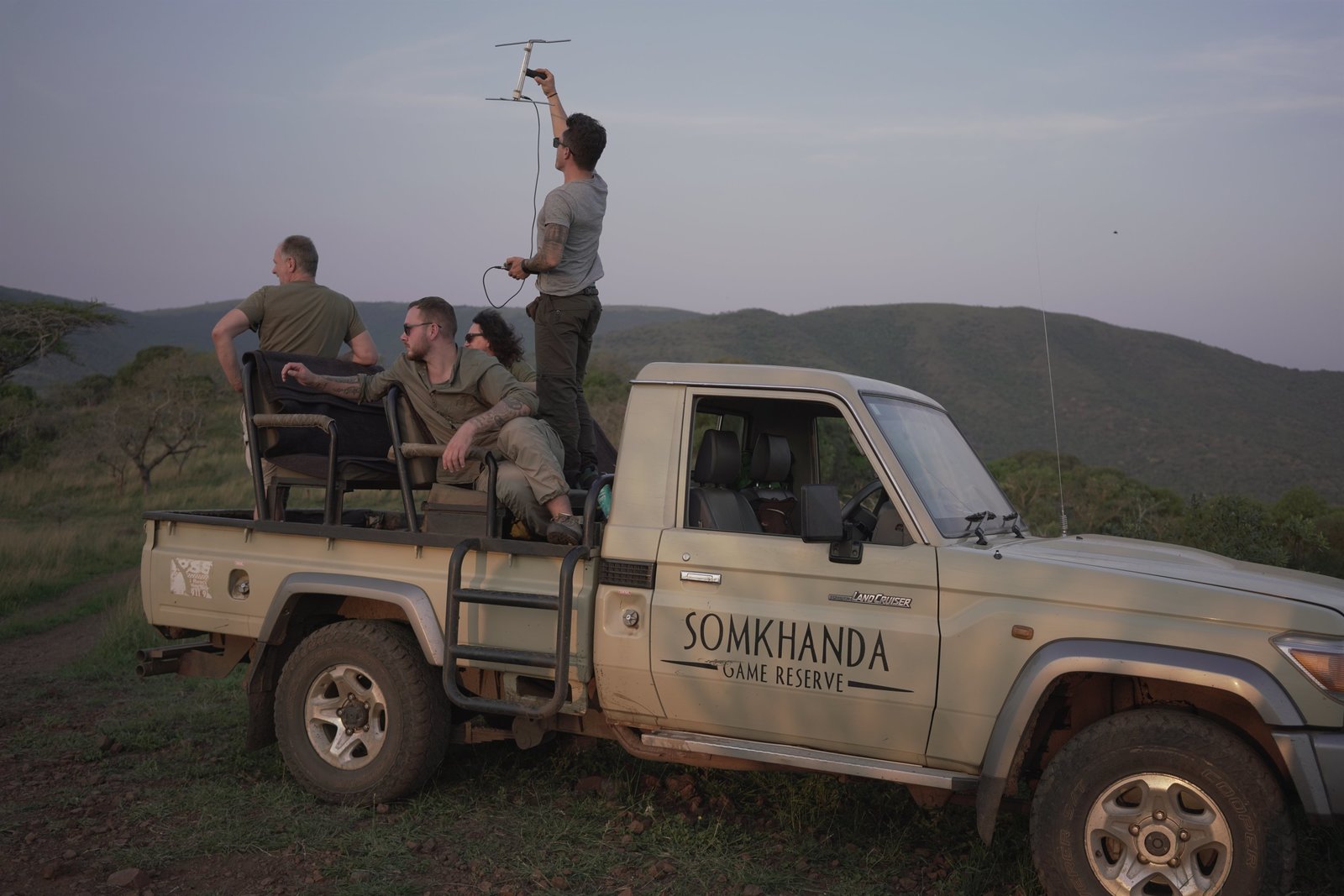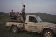 Im Urlaub Gutes tun: Voller Einsatz statt all-inclusiveWildhüterin Pippa Orpen und Gastfamilie Hans beim allmorgendlichen Orten von Wildtieren im südafrikanischen Reservat Somkhanda.Bild: © ZDF und Matthias Kretschmann.