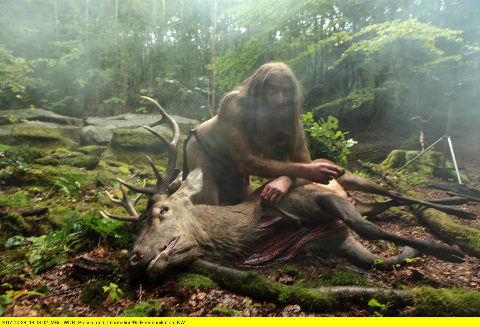 Der erste DeutscheVor 600.000 Jahren geht Homo Heidelbergensis zum ersten Mal auf die Jagd. Mit ihm ist das Zeitalter des Menschen in Deutschland angebrochen.Bild: © BR/WDR/Scope VFX
