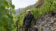 Moselwinzer Kilian Franzen während der Weinlese im steilsten Weinberg Europas.Bild: © Medienkontor / Maja Dielhenn