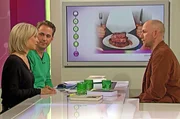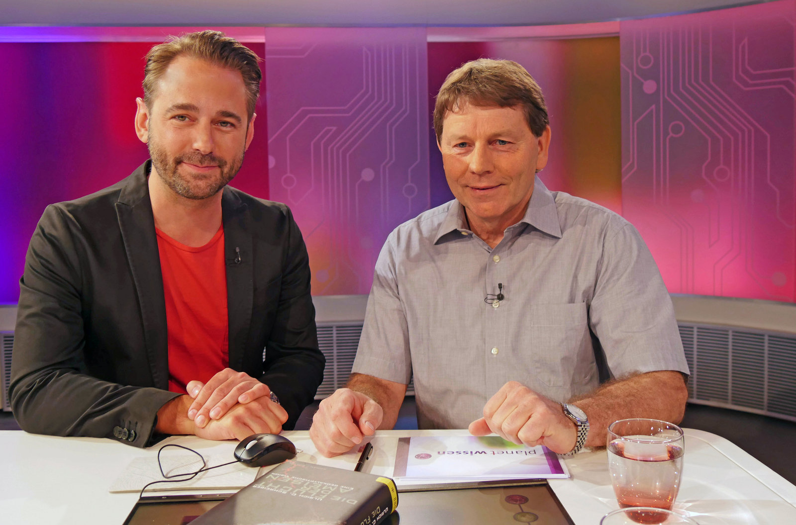 Planet Wissen Extra: Was wollen wir essen?Von links: Moderatorin Birgit Klaus und Moderator Dennis Wilms mit Studiogast Andreas Grabolle, Biologe.Bild: © BR/SWR
