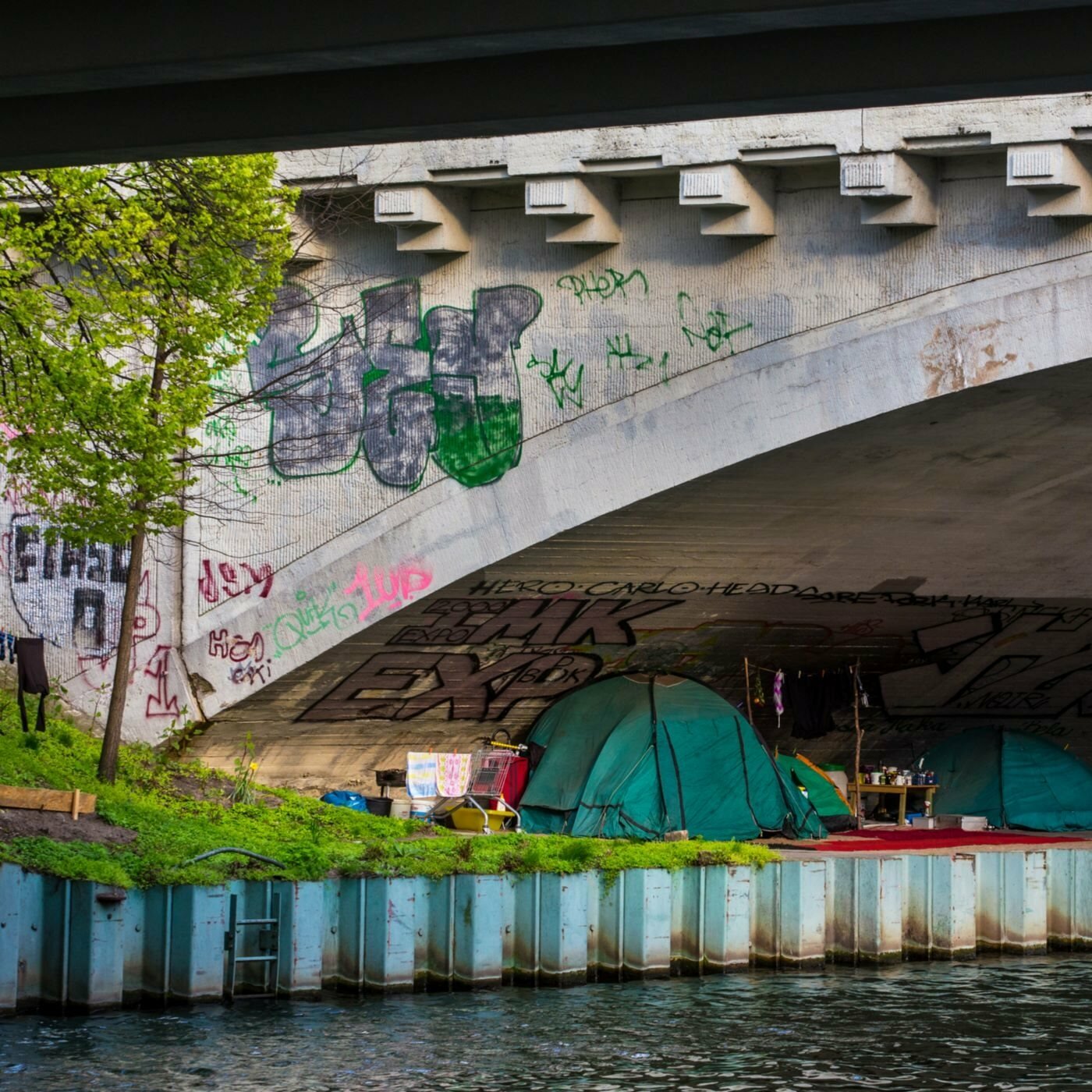 Gerettet und gestrandet - Jüdische Displaced Person nach 1945 in BayernObdachlose hausen unter einer Brücke an der Isar.Bild: © BR