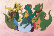 Krümel, Königin des DschungelsNicht alle Drachen sind große, furchteinflößende Kreaturen, die feuerspeiend durch die Lüfte fliegen. Die Pocket Dragons sind so klein, dass sie in eine Jackentasche passen und ganz liebenswürdige Drachen zum knuddeln.Bild: © 1998 BKN Kids Network, Inc. All Rights Reserved.