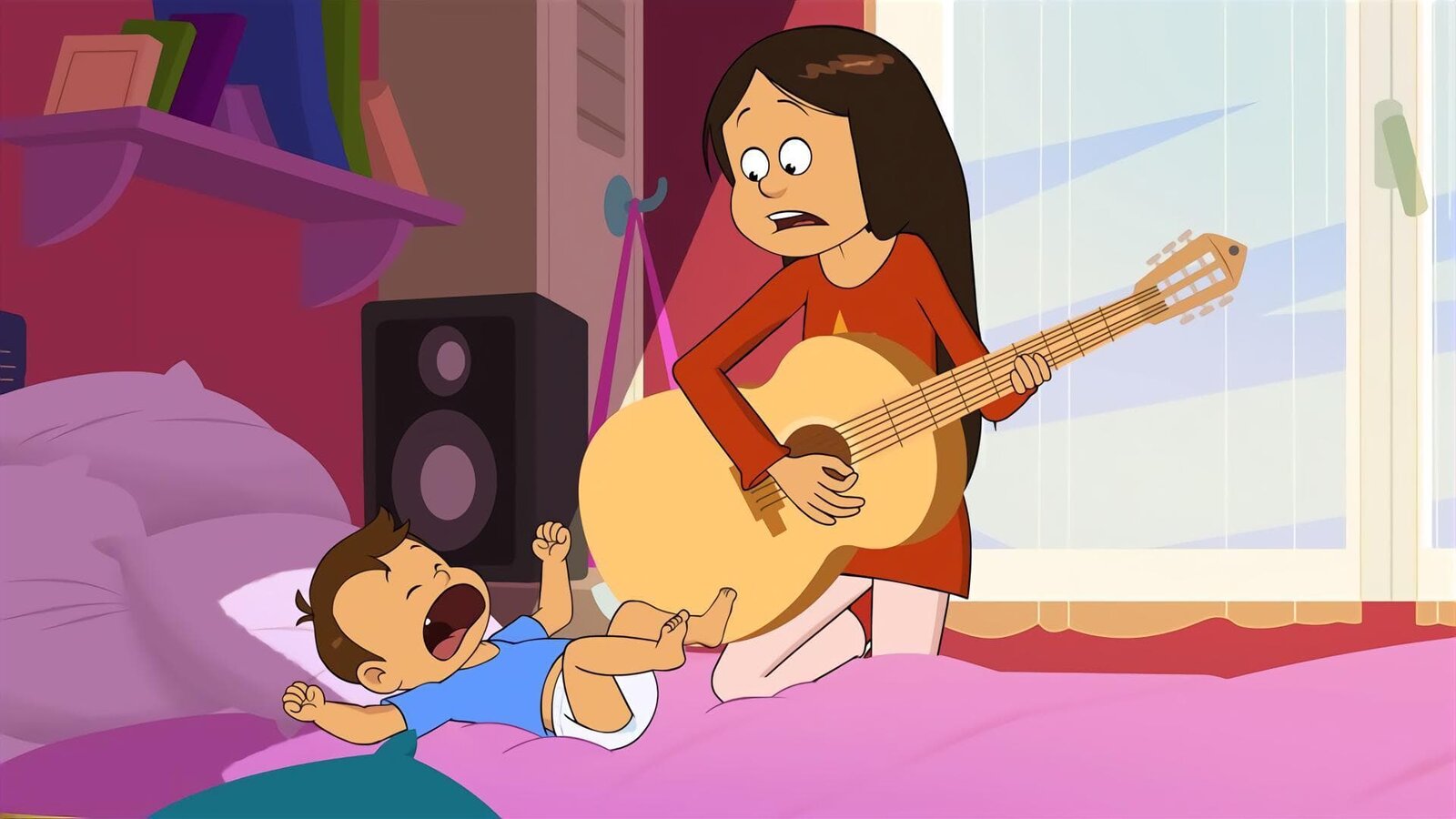 Wir sind alle Brüder!Wendy versucht vergebens das schreiende Leih-Brüderlein mit ihrer Musik zu beruhigen.Bild: © NDR/Bamboo Production/Samka Productions