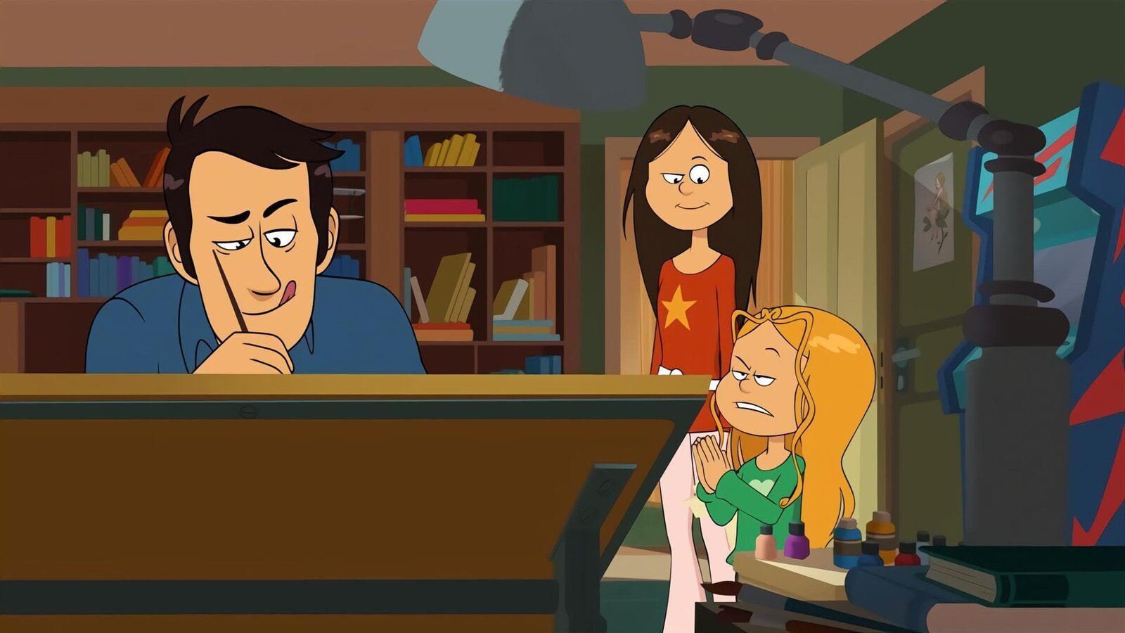 Inspiration oder Unfug?Durchbruch: Marines und Wendys Ideen inspirieren ihren Papa, der gleich den neuen Comic beginnt.Bild: © NDR/Bamboo Production/Samka Productions