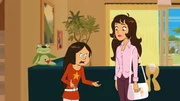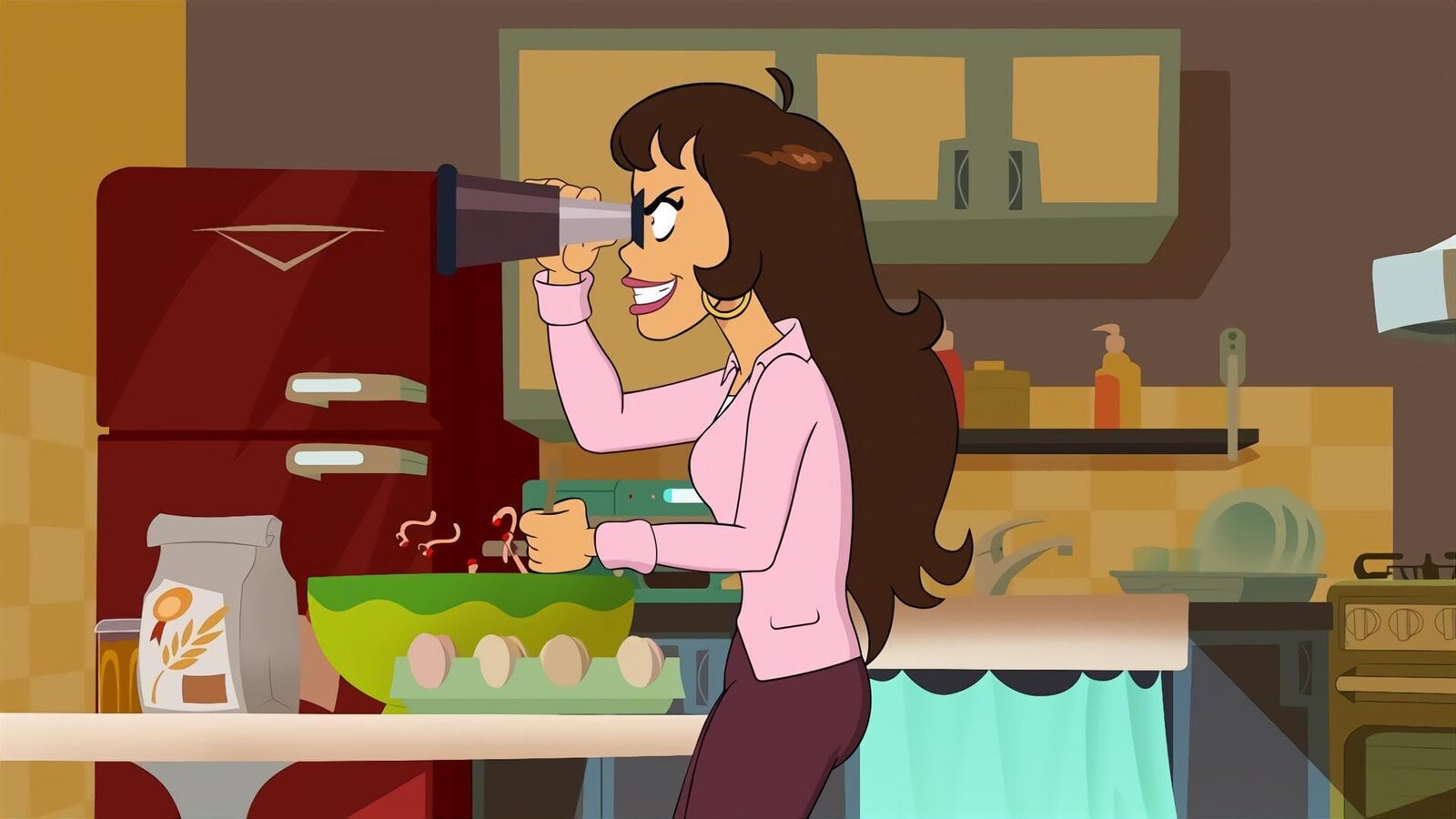 Ohne mich!Mama Sandrine spioniert Frau Plückhahn aus, da sie fest entschlossen ist, endlich das Kuchenduell gegen die Nachbarin zu gewinnen. Leider bemerkt sich nicht, was sie da alles nebenbei mit unterrührt.Bild: © NDR/Bamboo Production/Samka Productions