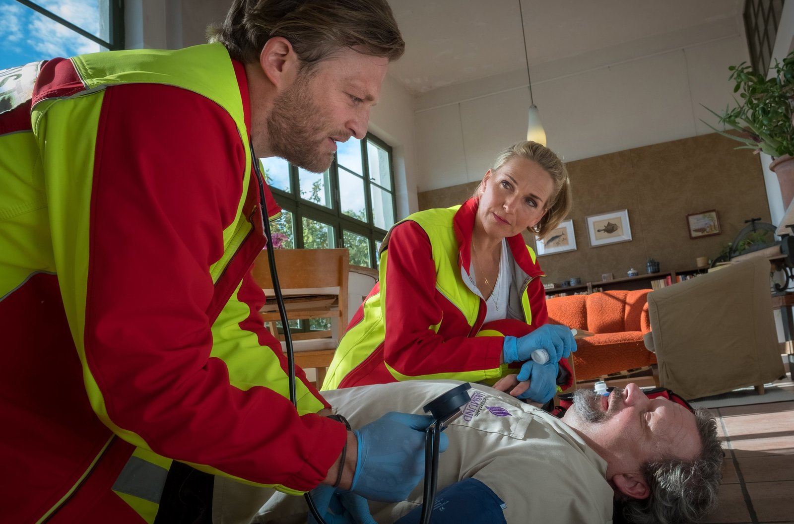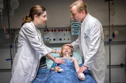 FamilienbandeNora Kaminski (Tanja Wedhorn) und Lars Hinrichs (Bo Hansen, li.) behandeln Dirk (Ulrich Bähnk).Bild: © ARD Degeto/Boris Laewen