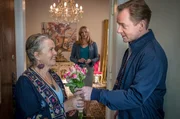 Der einsame SchwimmerNora (Tanja Wedhorn, Mitte) staunt: Dr. Heckmann (Patrick Heyn) bringt Roswitha Wing (Petra Kelling) Blumen mit.Bild: © ARD Degeto/Boris Laewen