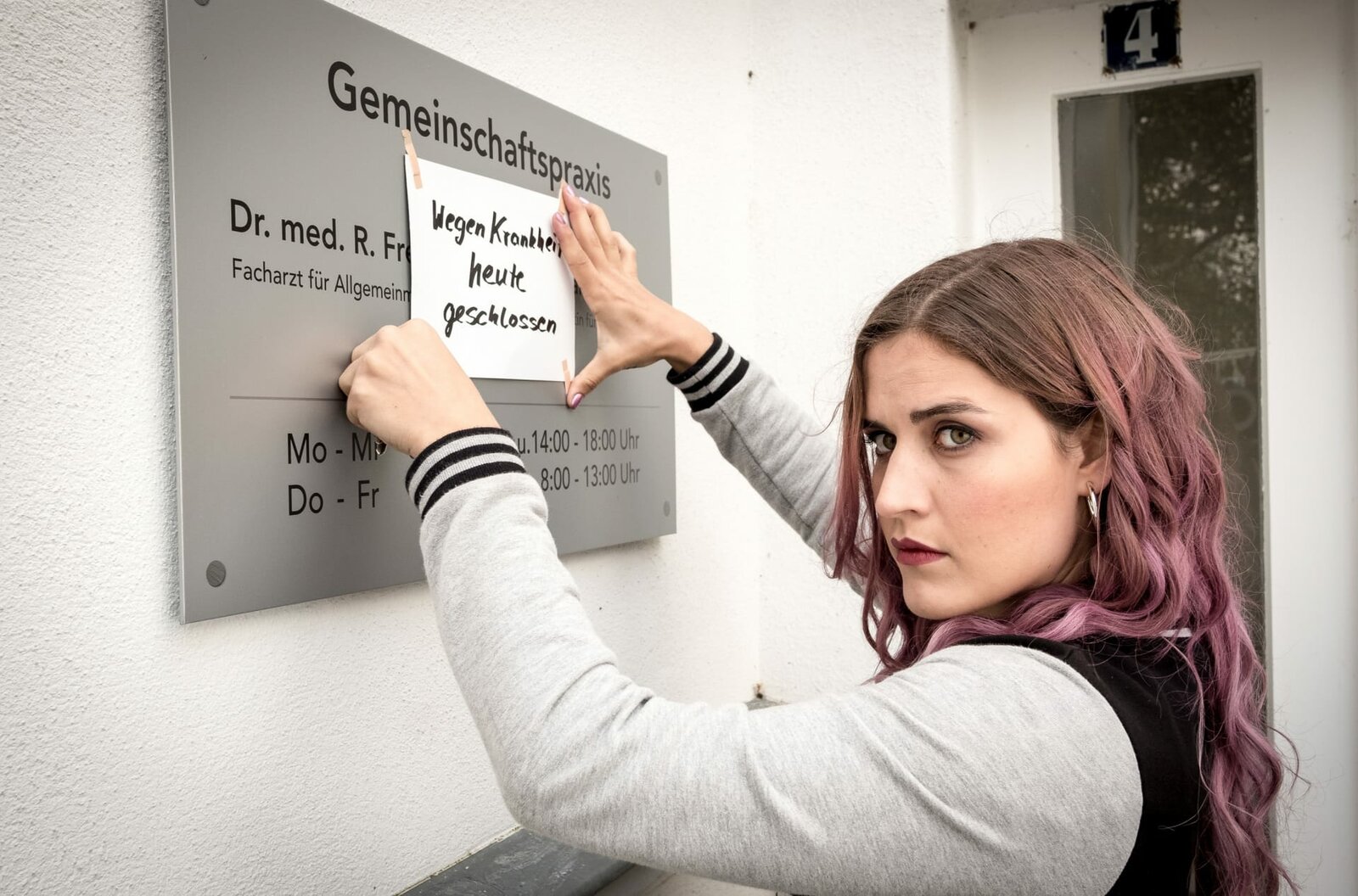 Der ProzessWegen Krankheit geschlossen: Mandy (Morgane Ferru) macht die Praxis dicht.Bild: © MDR/Degeto/Boris Laewen