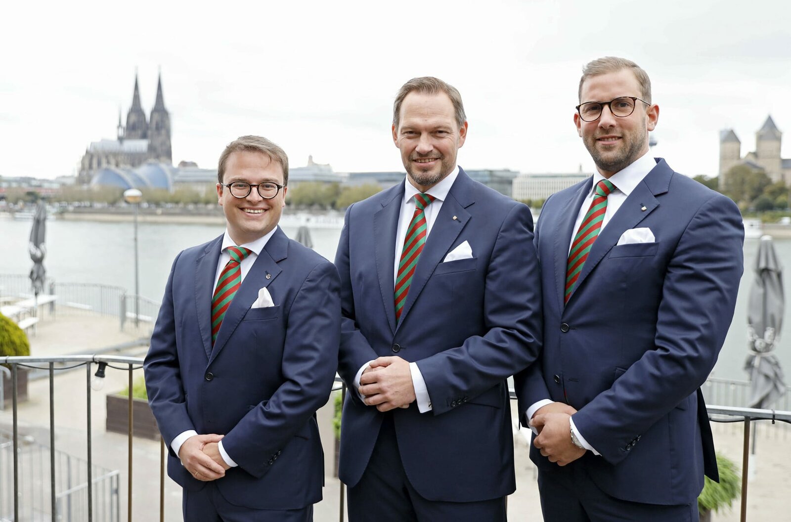 2022 - "Alles hät sing Zick"WDR Fernsehen PROKLAMATION DES KÖLNER DREIGESTIRNS 2022, "Motto: Alles hät sing Zick", Aufzeichnung aus dem Kölner Gürzenich, am Sonntag (09.01.22) um 20:15 Uhr. Das designierte Kölner Dreigestirn wird im großen Saal des Gürzenich von Oberbürgermeisterin Henriette Reker offiziell ins Amt gehoben und regiert ab diesem Zeitpunkt über die Jecken der Stadt. Erstmals präsentieren sich Prinz, Bauer und Jungfrau der Session in ihrem maßgeschneiderten Ornat der Öffentlichkeit. v.l.n.r. Jungfrau Gerdemie (Björn Braun), Prinz Sven I. (Sven Oleff) und Bauer Gereon (Gereon Glasemacher) vom Kölner Karnevalsverein Traditionskorps Altstädter Köln 1922 e.V. - (Archivfoto: Pressekonferenz zur Vorstellung des designierten Dreigestirn 2022 im Tanzbrunnen, 06.10.21) © WDR/picture alliance/Geisler-Foto, honorarfrei - Verwendung gemäß der AGB im engen inhaltlichen, redaktionellen Zusammenhang mit genannter WDR-Sendung bei Nennung "Bild: WDR/picture alliance/Geisler-Foto" (S3). WDR Kommunikation/Redaktion Bild, Köln, Tel: 0221/220 -7132 oder -7133, Fax: -777132, bildredaktion@wdr.deBild: © WDR/picture alliance/Geisler-Fot / WDR Kommunikation/Redaktion Bild