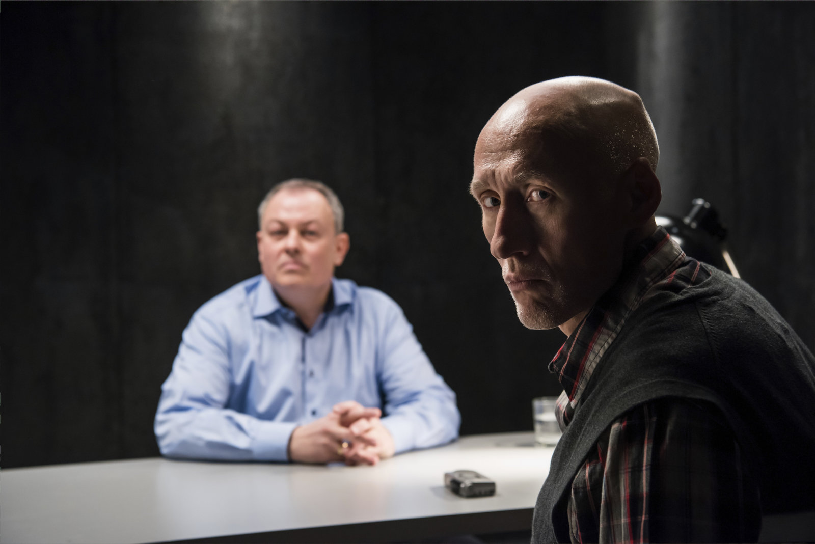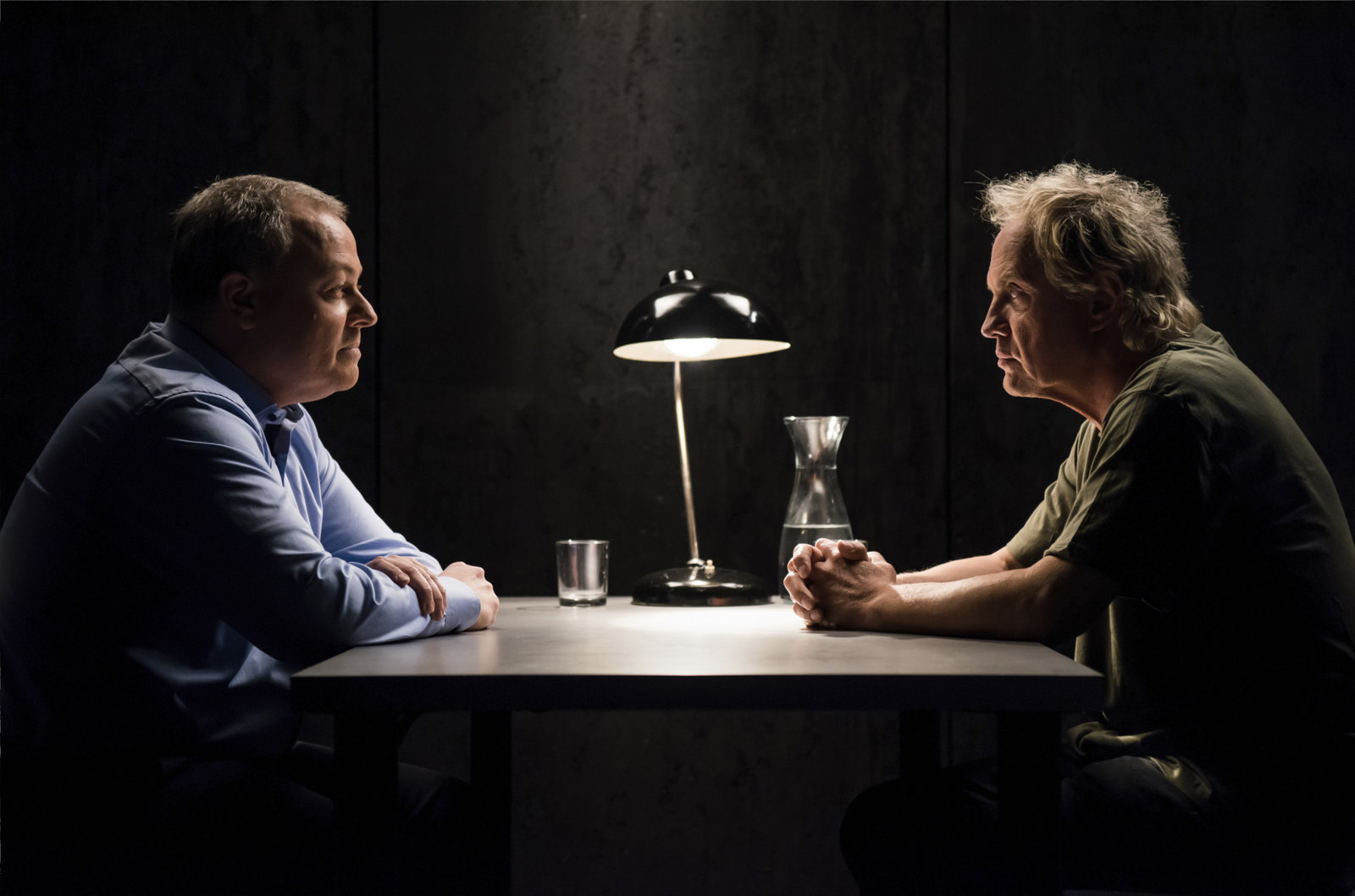 Detlef Bothe spielt den SexmörderMUNICH, GERMANY - MARCH 07: Actor Detlef Bothe (R) and criminal investigator and profiler Stephan Harbort pose on set during the shooting for the new local production 'Protokolle des Boesen' by German TV channel A&E on March 7, 2016 in Munich, Germany. (Photo by Joerg Koch/Getty Images for A&E)Bild: © A&E
