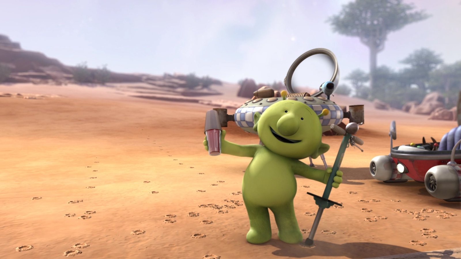 Pootle beweist dem immer noch mürrischen Groobie, dass sich auch Hüpfstangen prima zum Getränkemixen eignen.Â