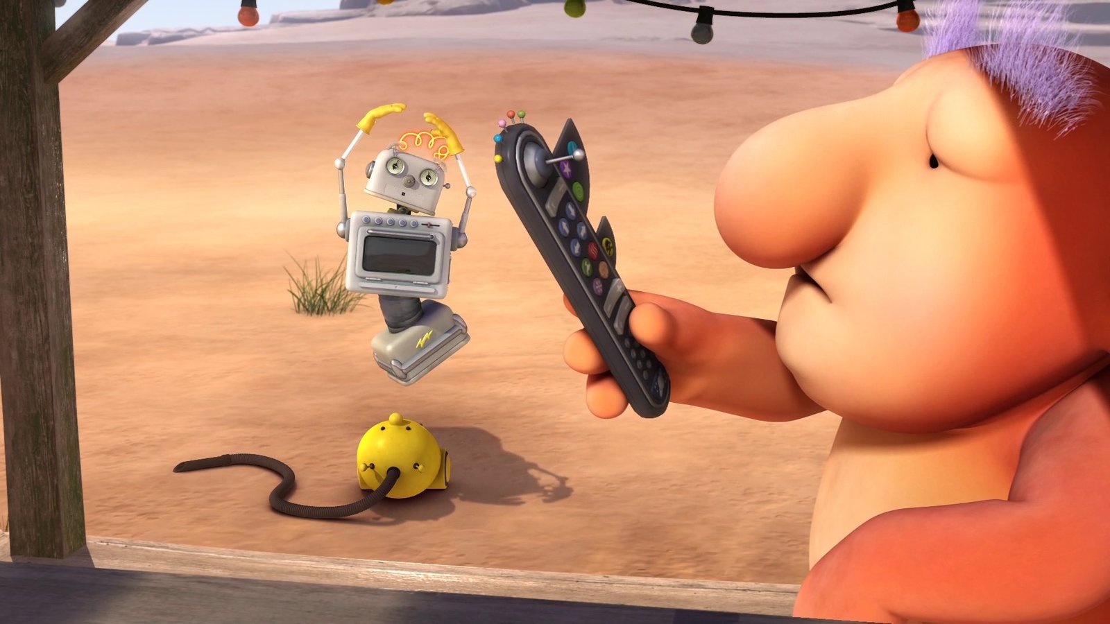 Groobie probiert seine neue Fernbedienung aus. Leider funktioniert sie nicht richtig und aktiviert ständig die falschen Geräte - zu Bud-Ds Leidwesen.Â