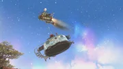 Mit ihren Raumschiffen trainieren die Freunde für eine große Flugshow.
