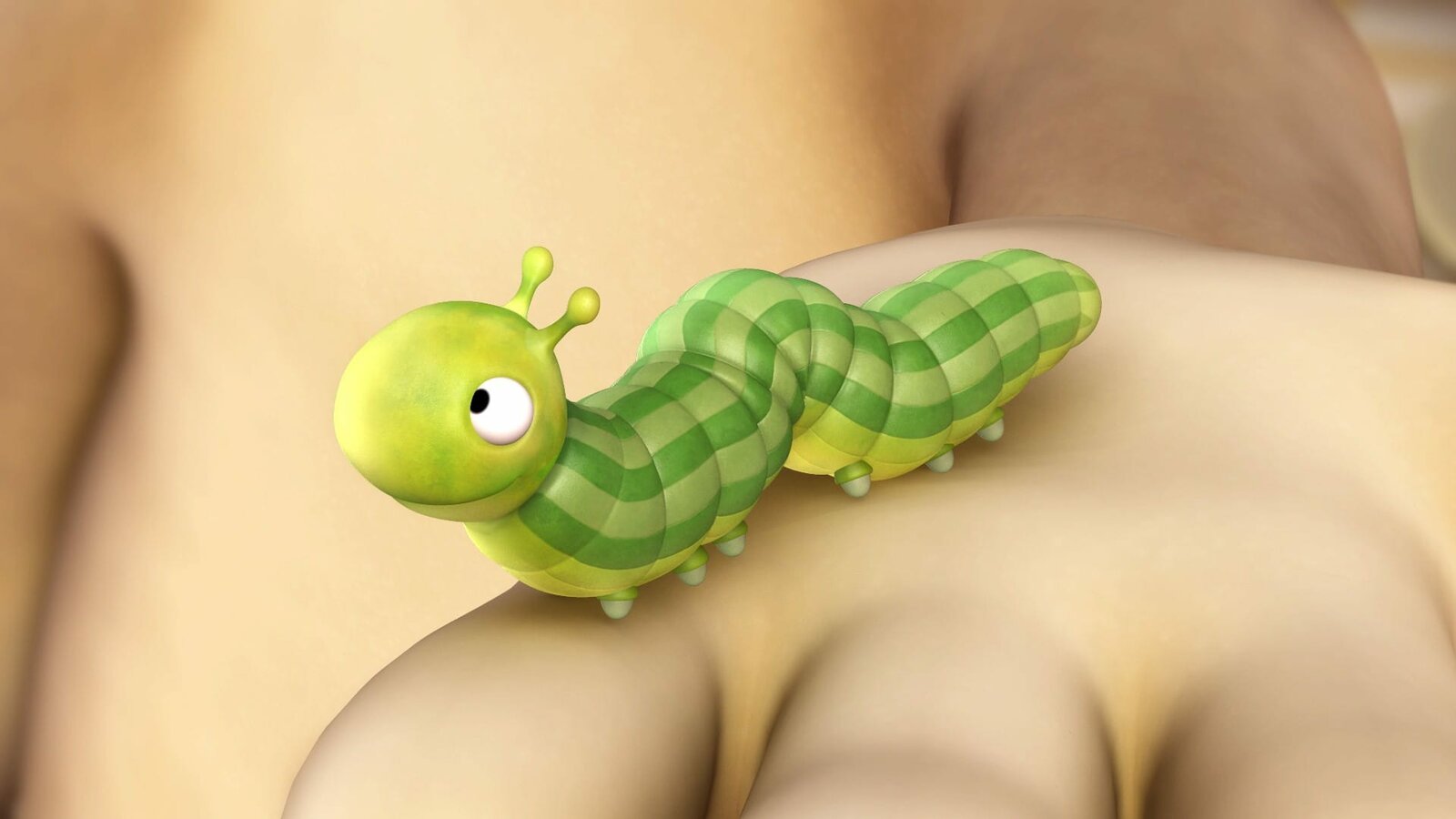 Stella ist entzückt von ihrem neuen Mitbewohner, der Raupe Maurice.
