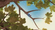 Die große FlugshowKrah ist im Wald auf einen Baum geklettert und traut sich nicht mehr hinunter.Bild: © KiKA/Snapper Productions/Q Pootle 5 LTD