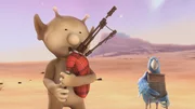 Oopsys RückwärtstagEddi spielt in Bud-Ds Film mit und gibt sich viel Mühe beim Musizieren.Bild: © KiKA/Snapper Productions/Q Pootle 5 LTD