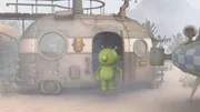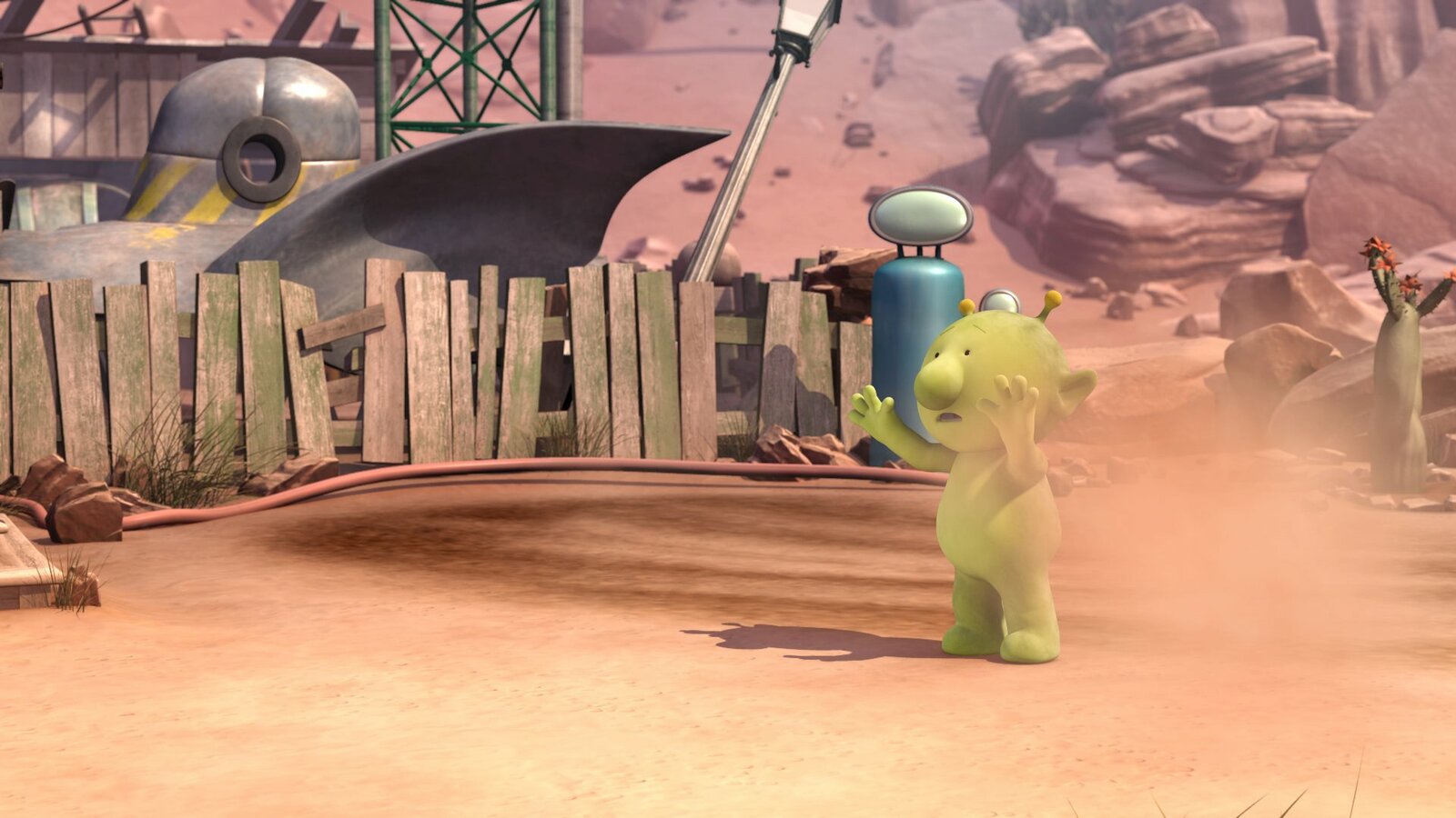 Planet Fred ist verdrehtAuf Okidoki toben plötzlich Wirbelstürme. Eddi konnte sich rechtzeitig in Sicherheit bringen.Bild: © KiKA/Snapper Productions/Q Pootle 5 LTD
