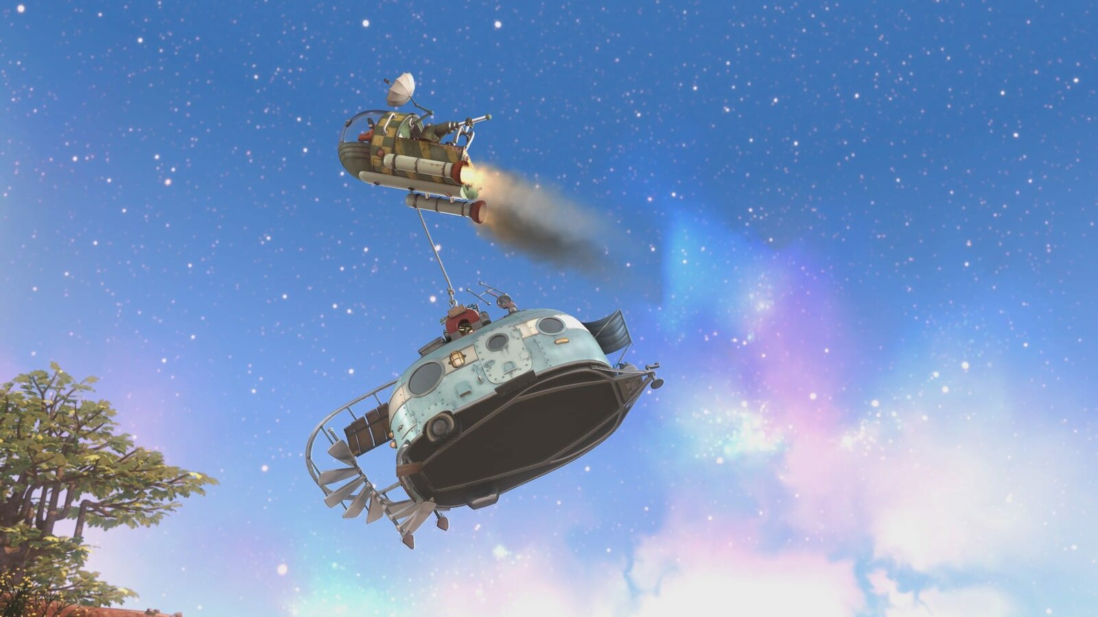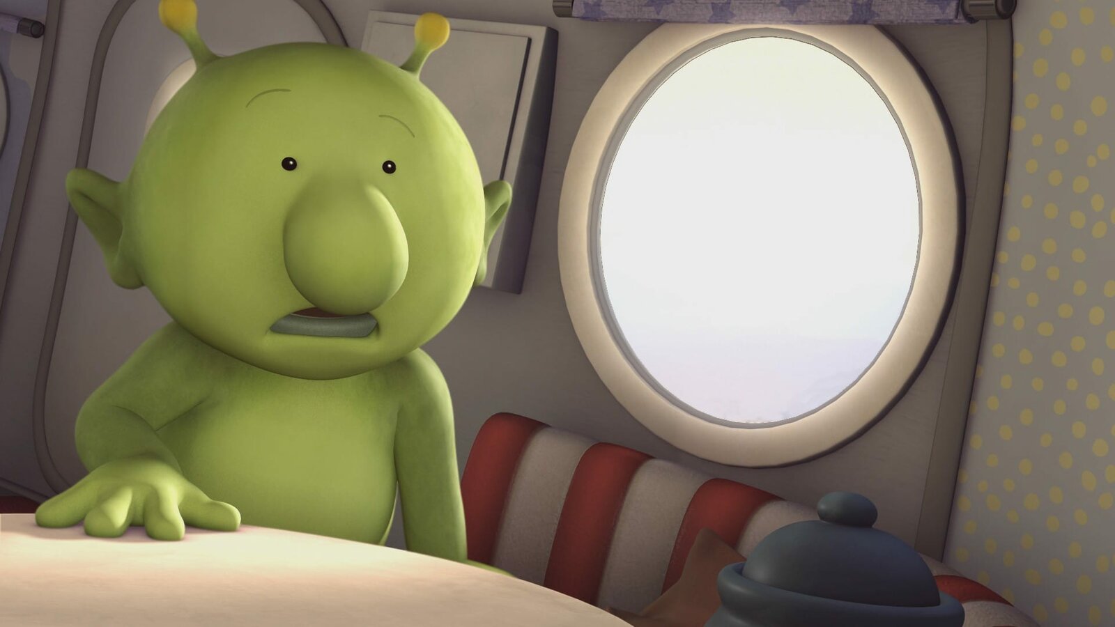 Das Ding aus dem WeltallPootles Raumschiff wurde von einer Blubberblase eingefangen und wird nun von ihr durch die Luft getragen.Bild: © KiKA/Snapper Productions/Q Pootle 5 LTD