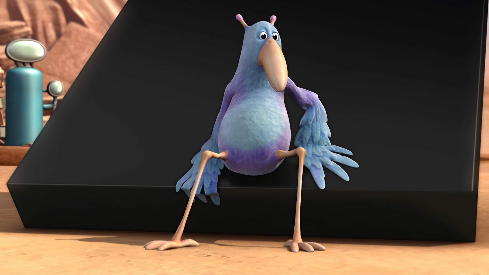 Das Ding aus dem WeltallKrah weiß leider auch nicht, wozu das schwarze rechteckige Ding gut ist.Bild: © KiKA/Snapper Productions/Q Pootle 5 LTD