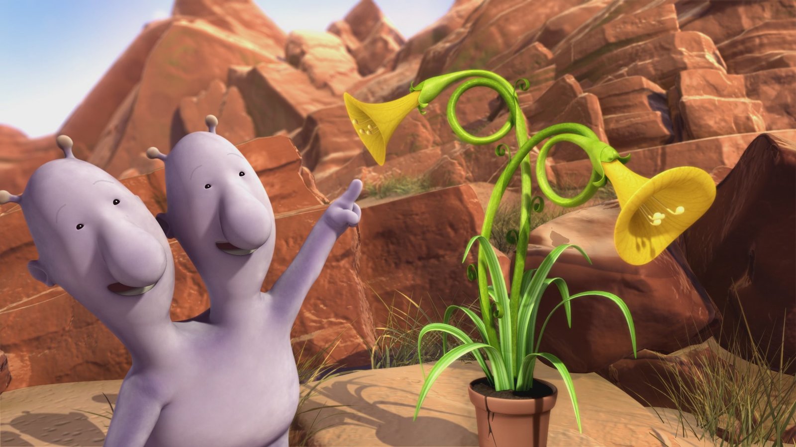 Im singenden TalEddi ist der einzige, dem es gelingt, seine Pflanze zum Wachsen zu bringen. Sie trägt sogar wunderschöne Blüten.ÂBild: © KiKA/Snapper Productions/Q Pootle 5 LTD