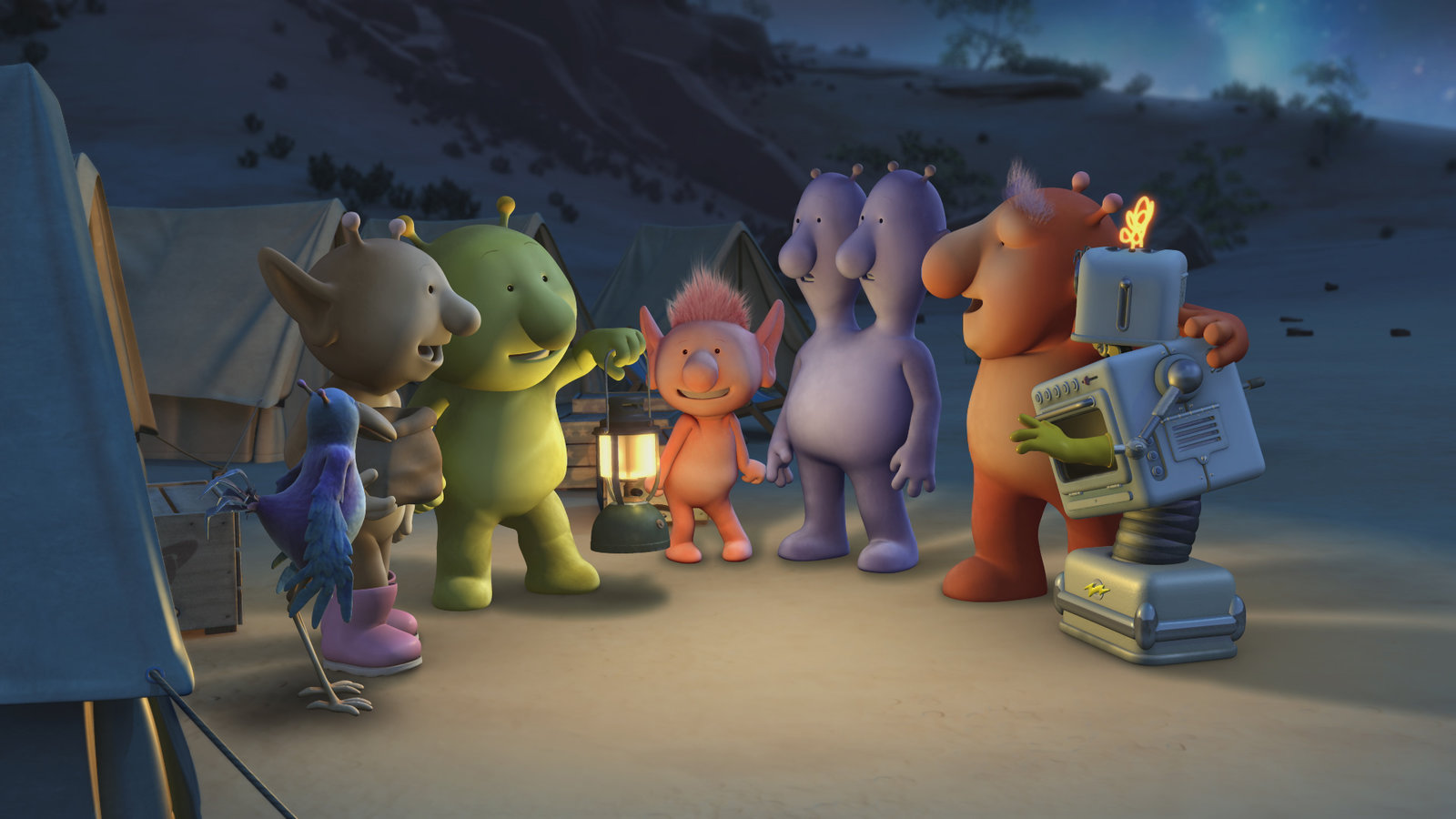 Geheimnisvolle Klänge der NachtDie Freunde sind froh, den Grund für die merkwürdigen Geräusche gefunden zu haben.ÂBild: © KiKA/Snapper Productions/Q Pootle 5 LTD