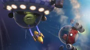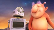 Wenn man sich zerteiltPootle hat eine Idee, wie sie Okidoki vor dem drohenden Asteroideneinschlag bewahren können - dazu braucht er auch sein Raumschiff.Bild: © KiKA/Snapper Productions/Q Pootle 5 LTD