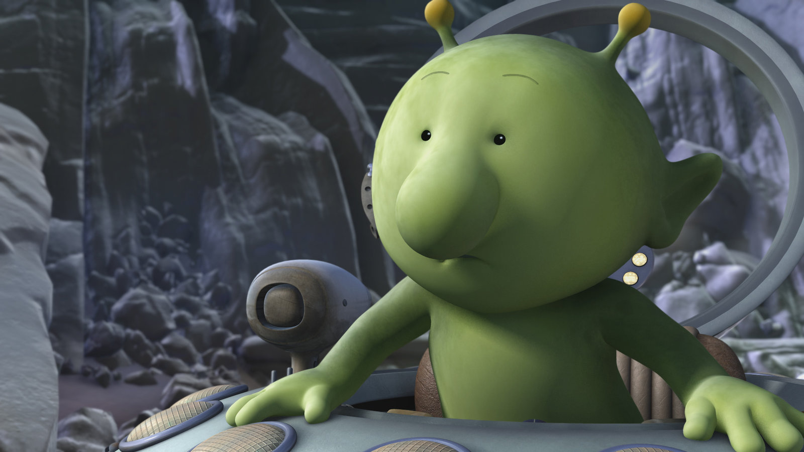 FitnesstagGroobie hat mit seinem Raumschiff einen Unfall gebaut. Jetzt hat er Flugangst und traut sich nicht mehr hinter das Steuer.Bild: © KiKA/Snapper Productions/Q Pootle 5 LTD