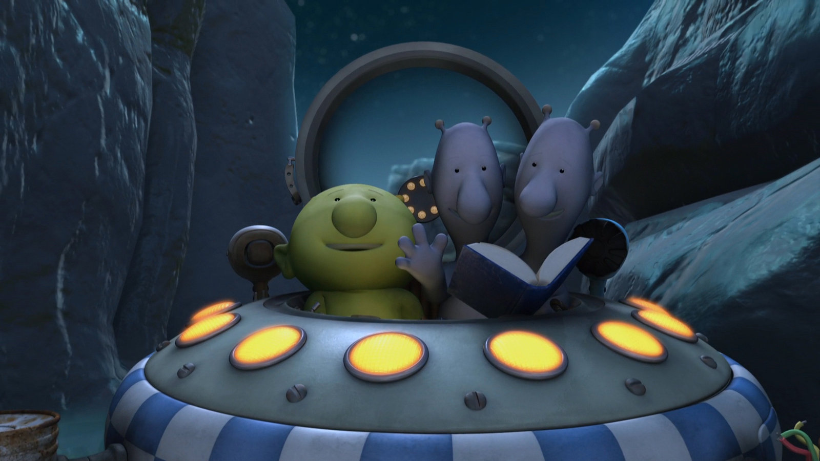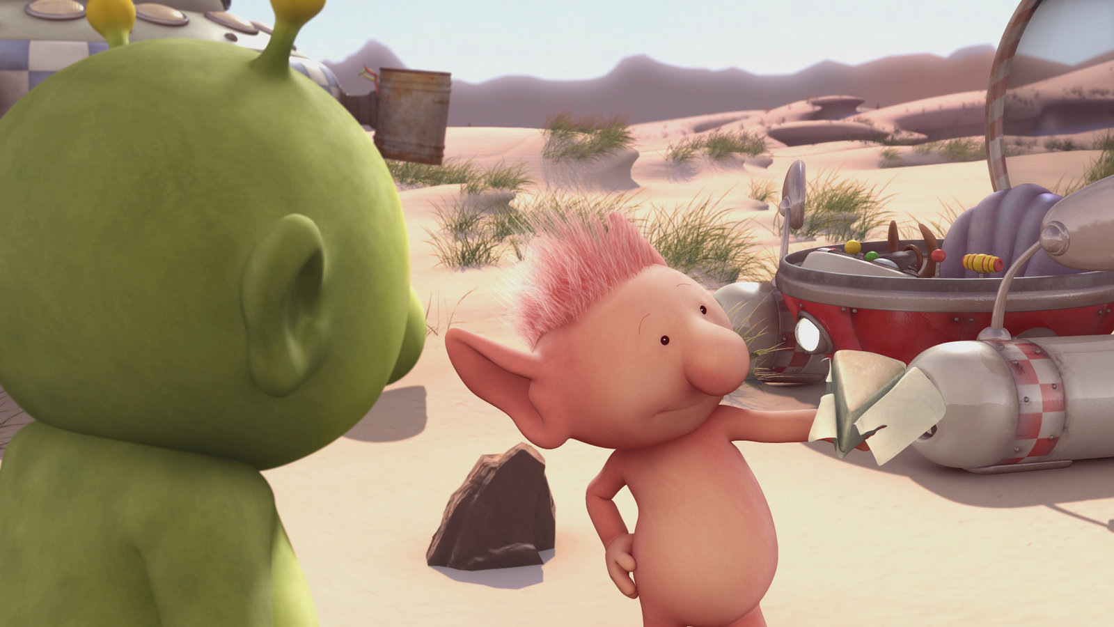 Im singenden TalPootle und Oopsy vor einem RaumschiffBild: © KiKA/Snapper Productions/Q Pootle 5 LTD