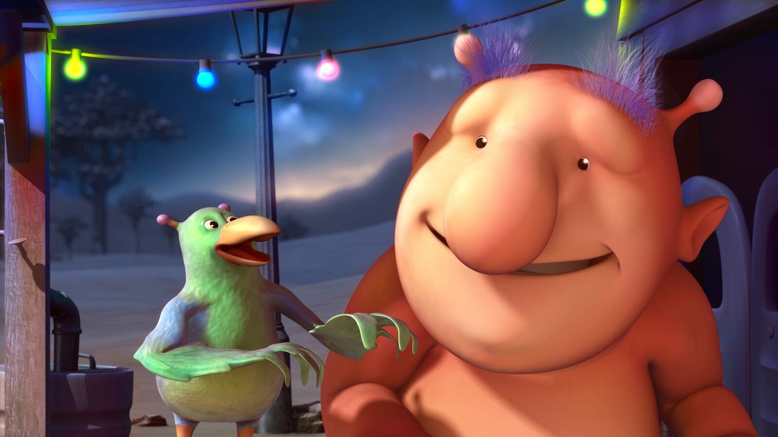 WeltraumwettrennenPootle und seine Freunde wollen bei einem gemeinsamen Picknick unter freiem Himmel die Sternschnuppen beobachten. Pootle beschließt, seltene Abendfrüchte mitzubringen.Bild: © KiKA/Snapper Productions/Q Pootle 5 LTD