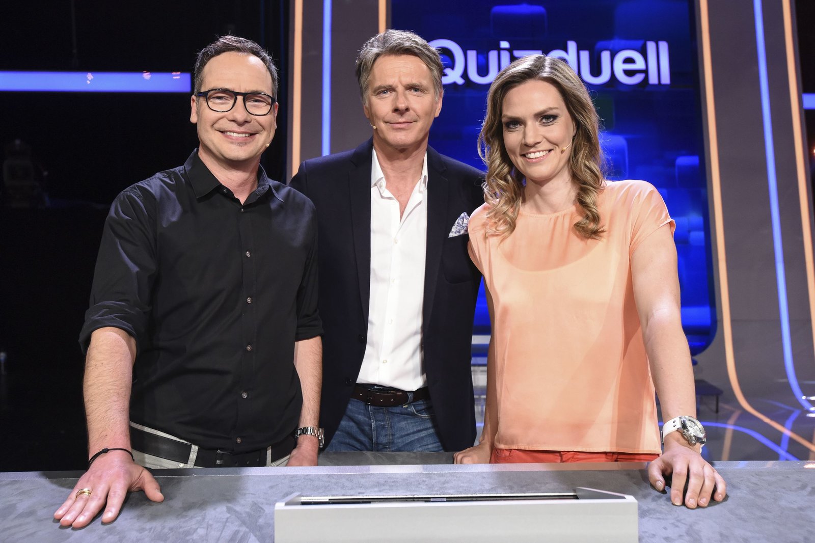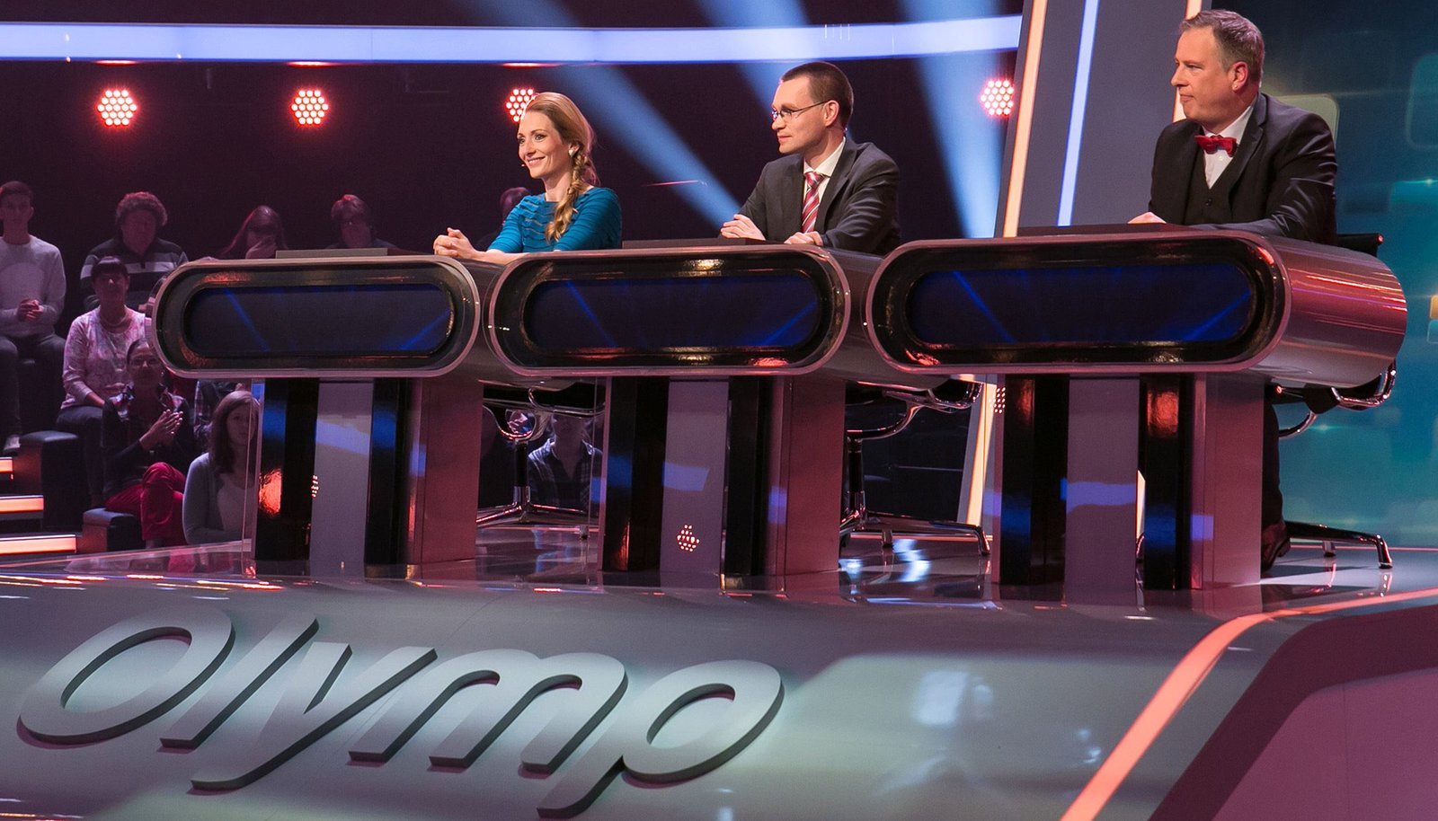 Olymp: Mirja Boes & Bernd StelterDie Quizduell-Olympioniken: Annika Schewe (l.), Prof. Eckhard Freise (M.) und Thorsten Zirkel (r.).Bild: © ARD/Uwe Ernst