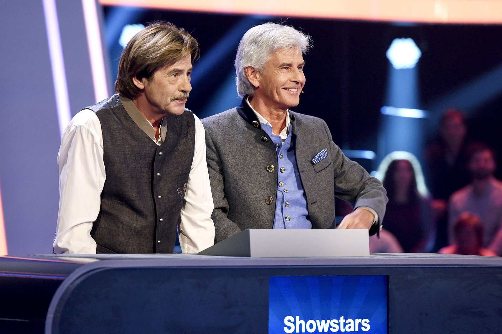 Henning Krautmacher & Volker LechtenbrinkDie Kandidaten Henning Krautmacher (Sänger, l.) und Volker Lechtenbrink (Schauspieler, r.).Bild: © ARD/Lisa Krechting