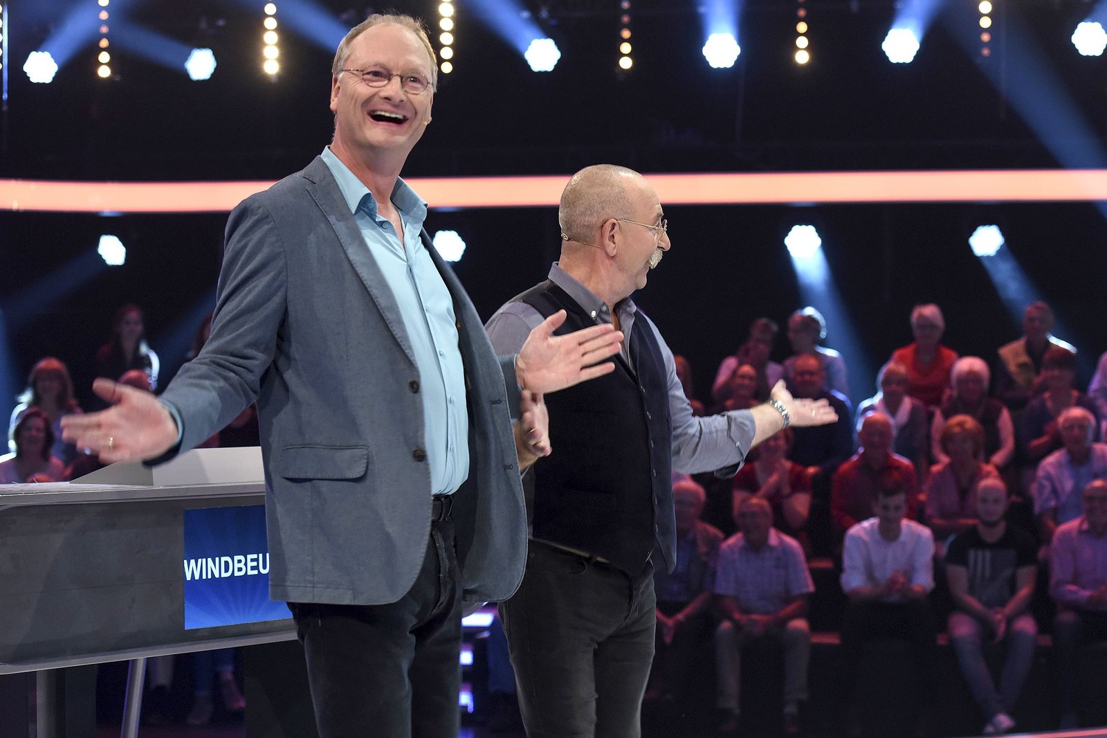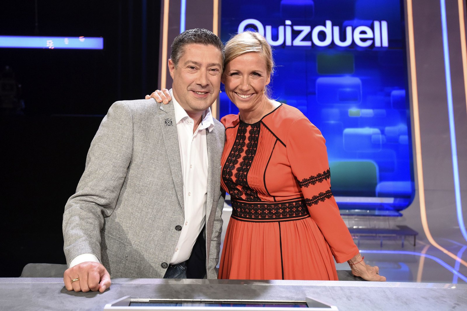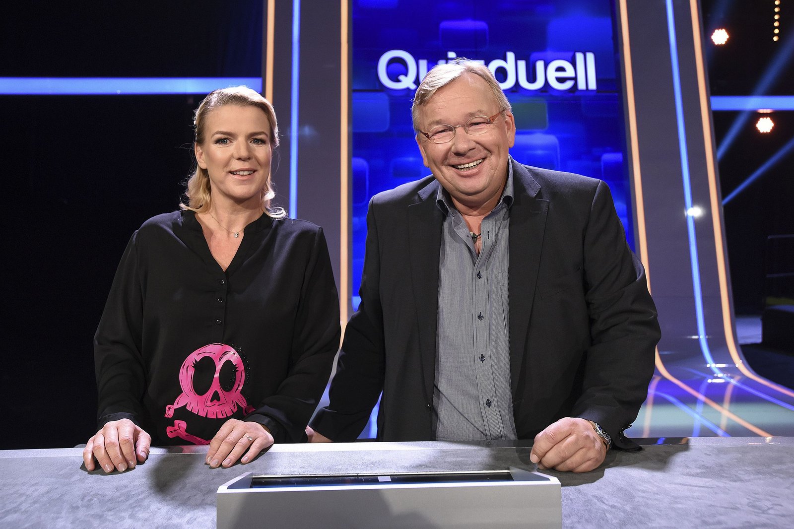 Olymp: Max Schautzer & Werner Schulze-ErdelARD QUIZDUELL DER OLYMP, Folge 221, mit Guido Cantz und Ruth Moschner, am Freitag (20.07.18) um 18:50 Uhr im ERSTEN. Bei Jörg Pilawa treten Prominente zu einem außergewöhnlichen Duell an. Um zu gewinnen, müssen die Stars drei superschlaue „Quizduell"-Profis schlagen. Ein Wissenswettkampf David gegen Goliath - die Stars gegen den „Quizduell-Olymp“. Es geht um Wissen und Nervenstärke, aber auch um die Einschätzung der Gegner und die Bereitschaft zu zocken. Und es geht um viel Geld. Doch Vorsicht! Im packenden Finale am Ende jeder Show heißt es für die siegreichen Kandidaten zunächst: doppelt oder halb. Eine spannende Wissensschlacht für Jung und Alt! Die Kandidaten des Teams "Blond": Guido Cantz (l.) und Ruth Moschner (r.), beide Moderatoren. | ©ARD/Uwe ErnstBild: © ARD/Uwe Ernst