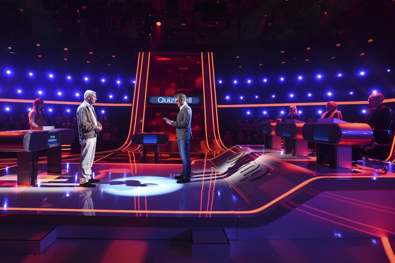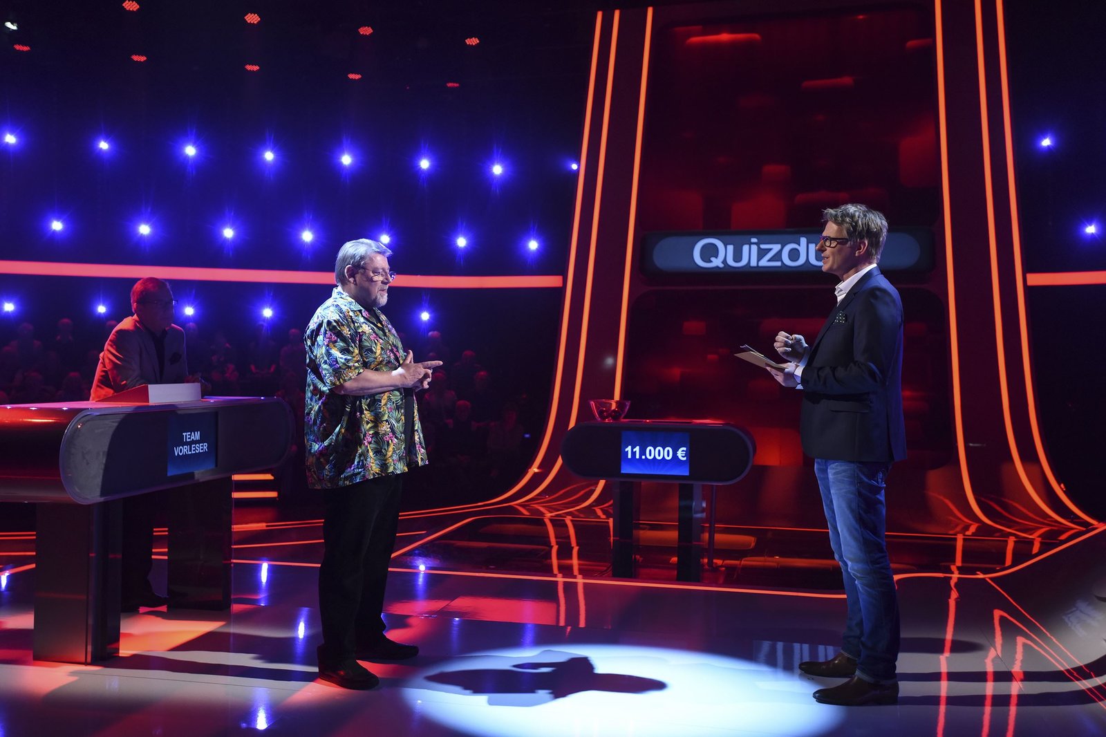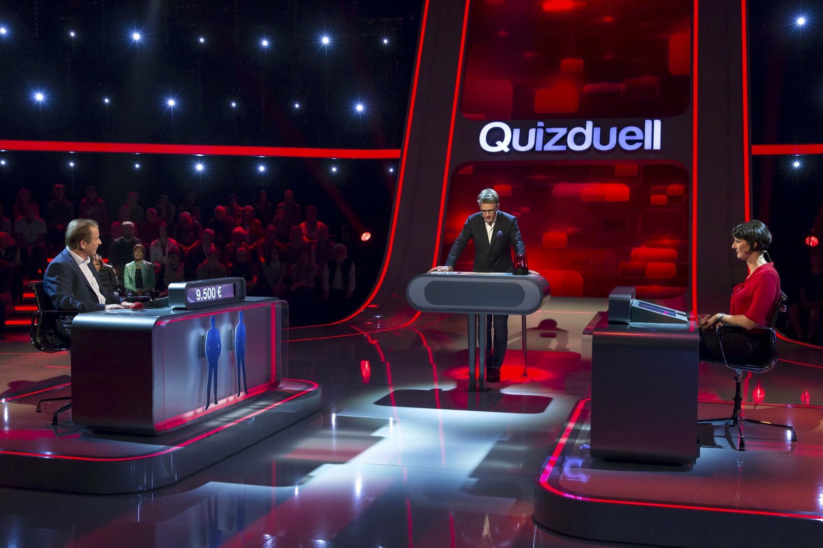 Olymp: Max Schautzer & Werner Schulze-ErdelARD QUIZDUELL DER OLYMP, Folge 221, mit Guido Cantz und Ruth Moschner, am Freitag (20.07.18) um 18:50 Uhr im ERSTEN. Bei Jörg Pilawa treten Prominente zu einem außergewöhnlichen Duell an. Um zu gewinnen, müssen die Stars drei superschlaue „Quizduell"-Profis schlagen. Ein Wissenswettkampf David gegen Goliath - die Stars gegen den „Quizduell-Olymp“. Es geht um Wissen und Nervenstärke, aber auch um die Einschätzung der Gegner und die Bereitschaft zu zocken. Und es geht um viel Geld. Doch Vorsicht! Im packenden Finale am Ende jeder Show heißt es für die siegreichen Kandidaten zunächst: doppelt oder halb. Eine spannende Wissensschlacht für Jung und Alt! Die Kandidaten des Teams "Blond": Guido Cantz (l.) und Ruth Moschner (r.), beide Moderatoren. | ©ARD/Uwe ErnstBild: © ARD/Uwe Ernst