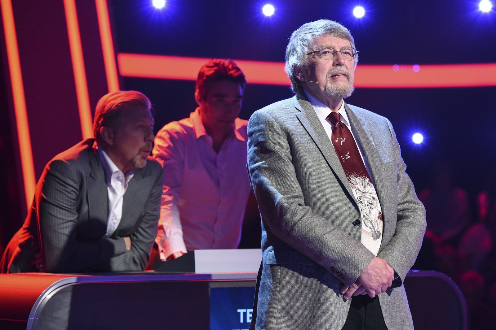 Olymp: Boris Becker & Michael StichBei Jörg Pilawa treten freitags um 18:50 Uhr Prominente zu einem außergewöhnlichen Duell an. Um zu gewinnen, müssen die Stars in sechs Runden drei superschlaue „Quizduell"-Profis schlagen. Ein Wissenswettkampf David gegen Goliath - die Stars gegen den „Quizduell-Olymp“. Es geht um Wissen und Nervenstärke, aber auch um die Einschätzung der Gegner und die Bereitschaft zu zocken. Und es geht um viel Geld. Doch Vorsicht! Im packenden Finale am Ende jeder Show heißt es für die siegreichen Kandidaten zunächst: doppelt oder halb. Eine spannende Wissensschlacht für Jung und Alt! Die Ex-Tennisprofis und Wimbledonsieger Boris Becker (l.) und Michael Stich (M.) mit Quizduell-Olympionik Prof. Eckhard Freise (r.).Bild: © ARD/Uwe Ernst