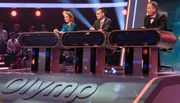 Olymp: Hans Sigl & Matthias SteinerModerator Jörg Pilawa (r.) mit den Kandidatinnen des Teams „Sport“: Die Sportmoderatorinnen Ulrike von der Groeben (l.) und Katrin Müller-Hohenstein (M.) . Sie treten gegen die Quizduell-Olympioniken Annika Schewe, Prof. Eckhard Freise und Thorsten Zirkel an.Bild: © ARD/Uwe Ernst