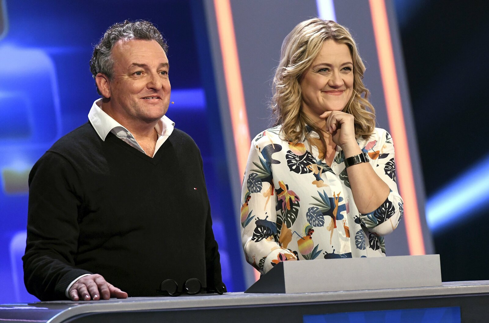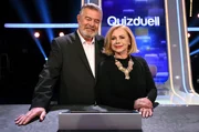 Olymp: Harry Wijnvoord & Marijke AmadoBei Jörg Pilawa treten Prominente zu einem außergewöhnlichen Duell an. Um zu gewinnen, müssen die Stars in sechs Runden drei superschlaue "Quizduell"-Profis schlagen. - Foto: Die Kandidaten des Teams “Showmaster“: Harry Wijnvoord (l.) und Marijke Amado (r.).Bild: © rbb/ARD/Uwe Ernst