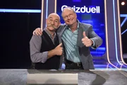 Olymp: Steffen Henssler & Guido CantzQuizduell-Olymp: Prominente gegen Deutschlands Quiz-Giganten. Die Kandidaten des Teams "Koch & Komik": Steffen Henssler (l.) und Guido Cantz (r.).Bild: © ARD/Markus Hertrich