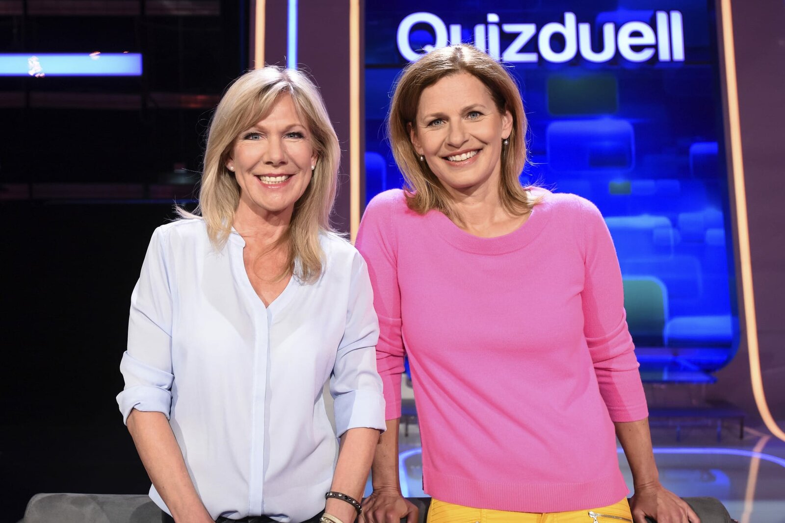 Olymp: Ulrike von der Groeben & Kathrin Müller-HohensteinDie Kandidatinnen des Teams „Sport“: Die Sportmoderatorinnen Ulrike von der Groeben (l.) und Katrin Müller-Hohenstein (r.), treten gegen die Quizduell-Olympioniken Annika Schewe, Prof. Eckhard Freise und Thorsten Zirkel an.Bild: © ARD/Uwe Ernst