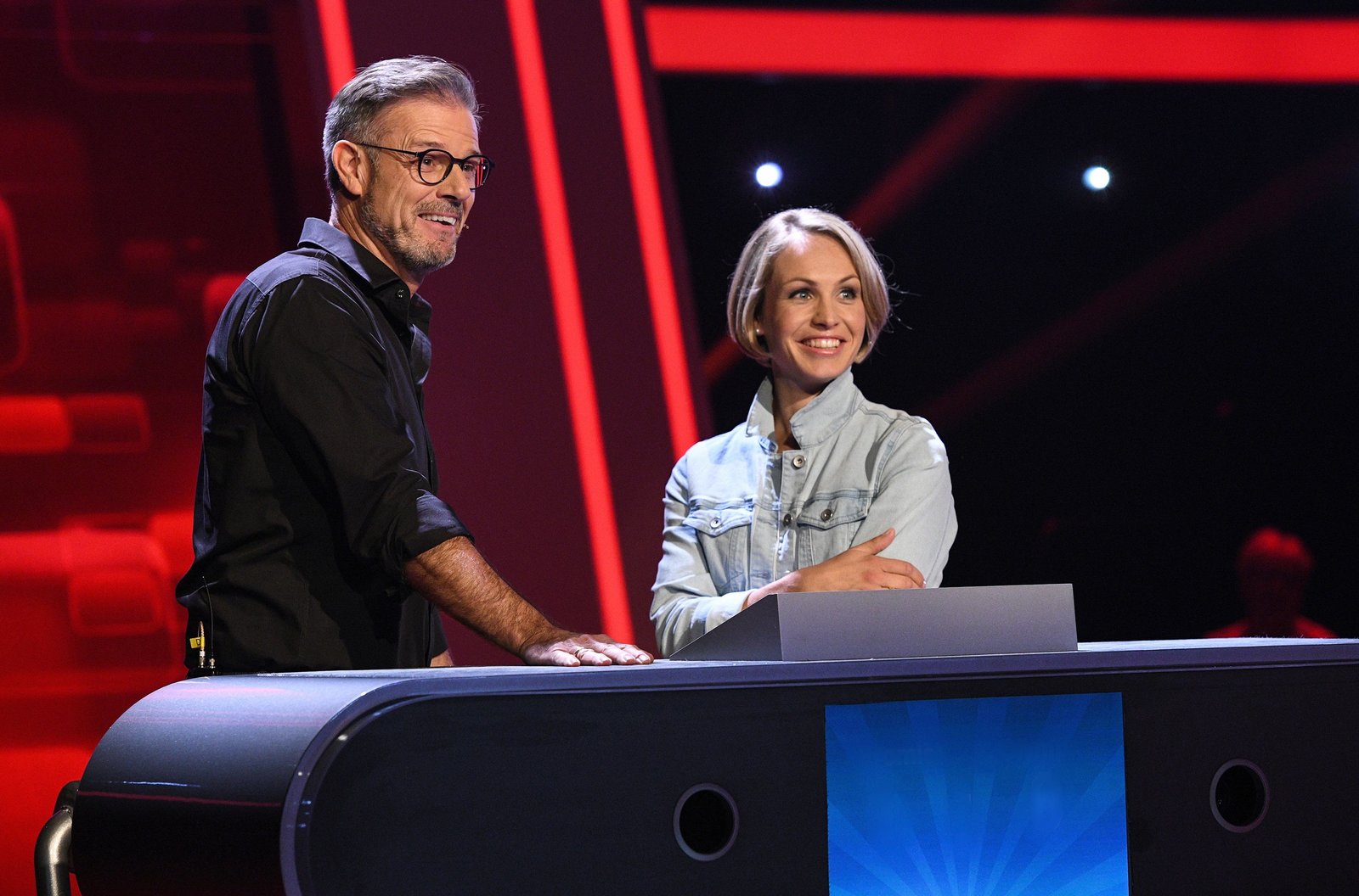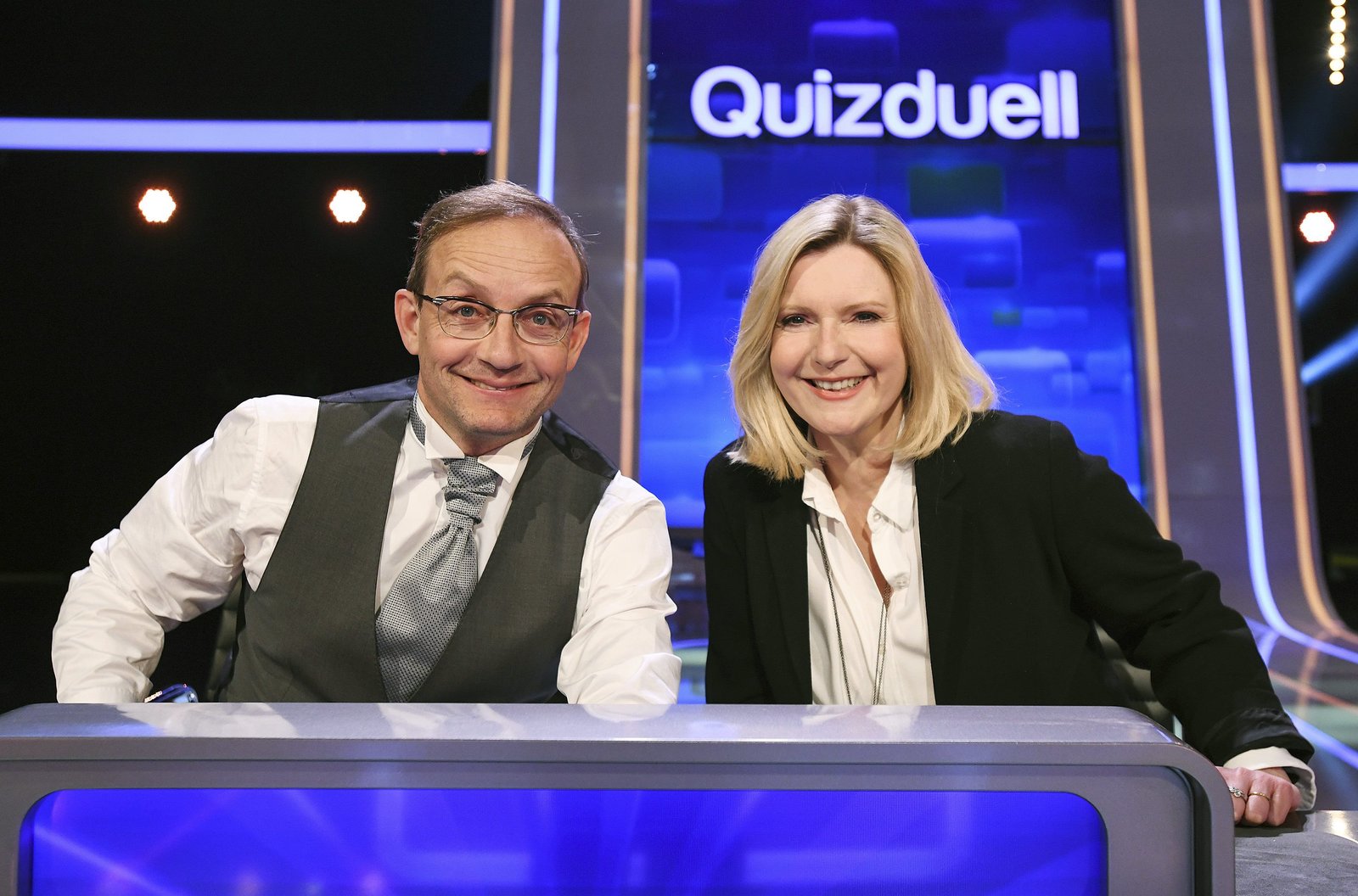 Wigald Boning & Barbara EligmannDie Kandidaten des Teams "Clever": Wigald Boning (Moderator, l.) und Barbara Eligmann (Moderatorin, r.).Bild: © ARD/Uwe Ernst