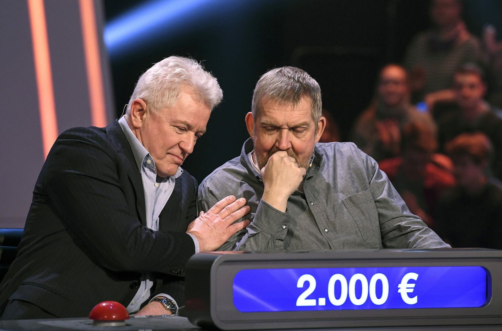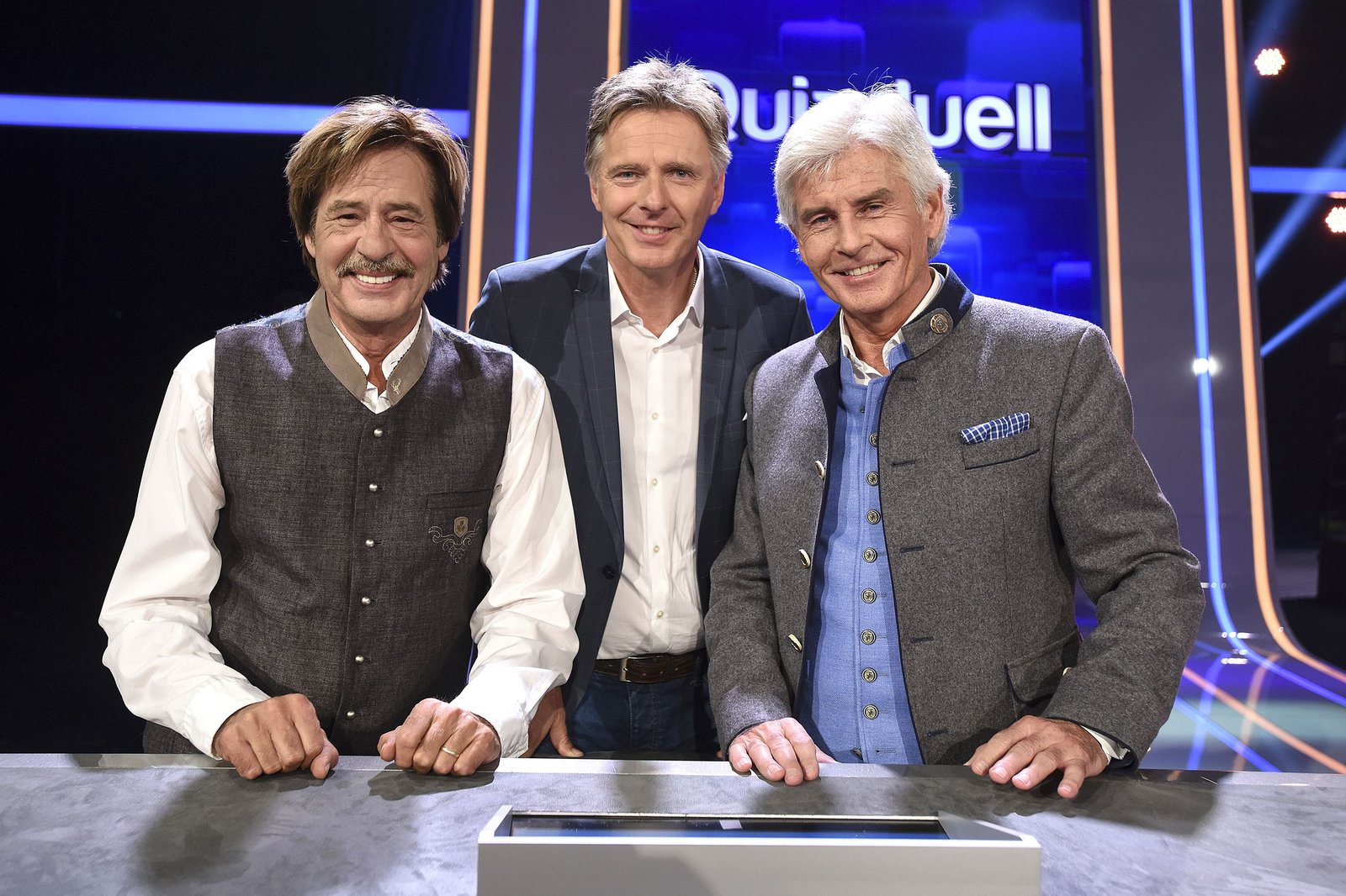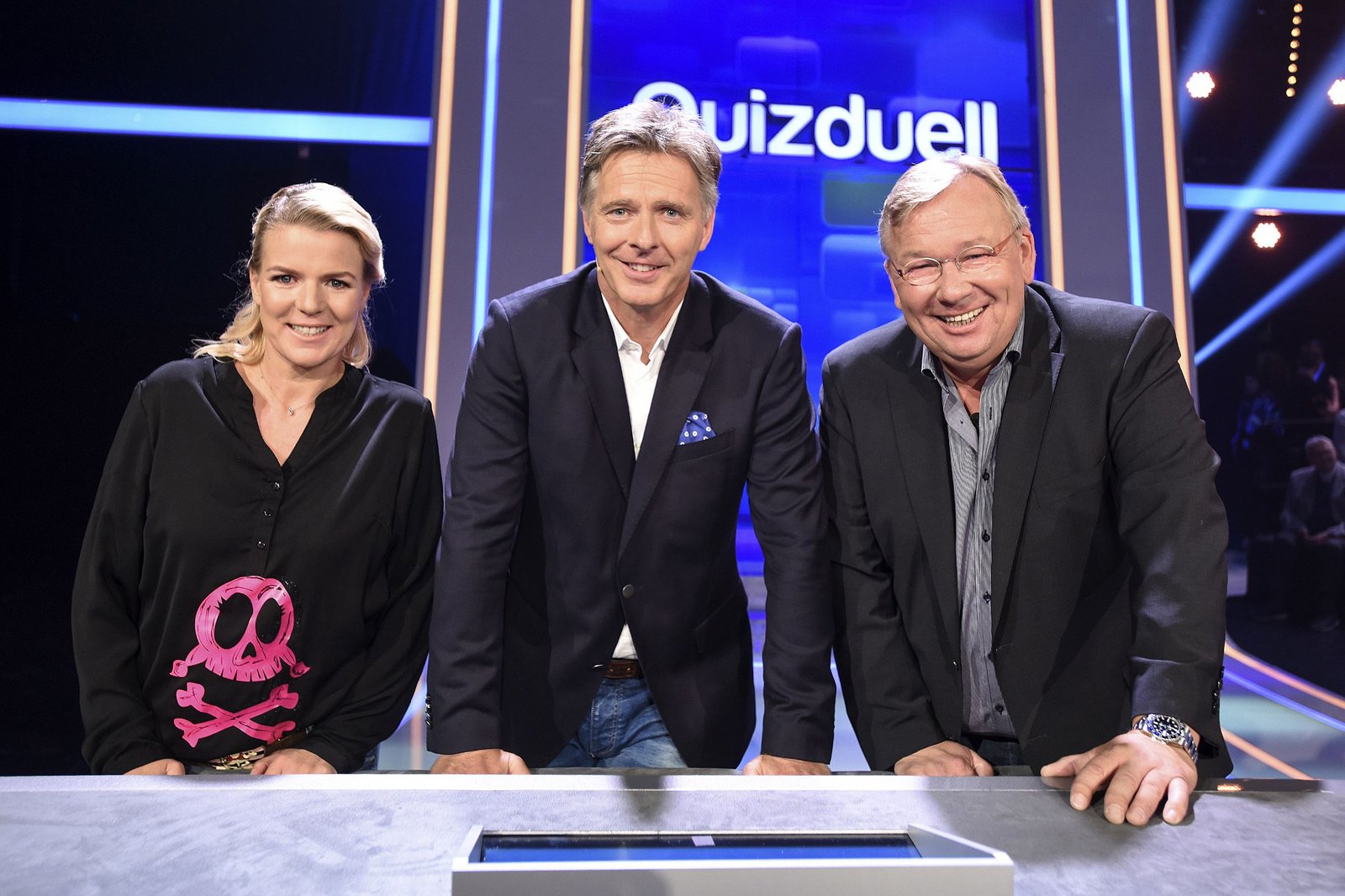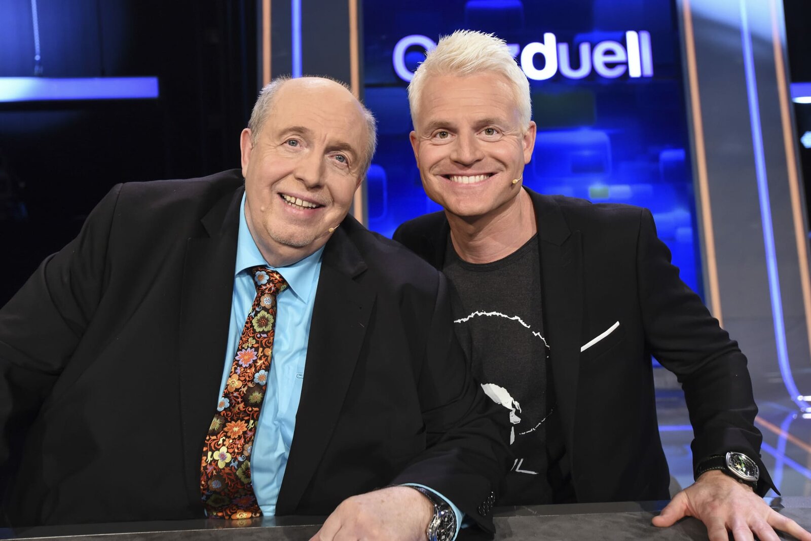 Olymp: Max Schautzer & Werner Schulze-ErdelARD QUIZDUELL DER OLYMP, Folge 221, mit Guido Cantz und Ruth Moschner, am Freitag (20.07.18) um 18:50 Uhr im ERSTEN. Bei Jörg Pilawa treten Prominente zu einem außergewöhnlichen Duell an. Um zu gewinnen, müssen die Stars drei superschlaue „Quizduell"-Profis schlagen. Ein Wissenswettkampf David gegen Goliath - die Stars gegen den „Quizduell-Olymp“. Es geht um Wissen und Nervenstärke, aber auch um die Einschätzung der Gegner und die Bereitschaft zu zocken. Und es geht um viel Geld. Doch Vorsicht! Im packenden Finale am Ende jeder Show heißt es für die siegreichen Kandidaten zunächst: doppelt oder halb. Eine spannende Wissensschlacht für Jung und Alt! Die Kandidaten des Teams "Blond": Guido Cantz (l.) und Ruth Moschner (r.), beide Moderatoren. | ©ARD/Uwe ErnstBild: © ARD/Uwe Ernst