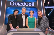 Folge 13Die Kandidaten des Teams "Tagesschau?: Die Tagesschau-Sprecher Claus-Erich Boetzkes (l.) und Susanne Holst (r.) treten gegen die Quizduell-Olympioniken Annika Schewe, Prof. Eckhard Freise und Thorsten Zirkel an.Bild: © rbb/ARD/Uwe Ernst