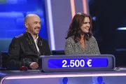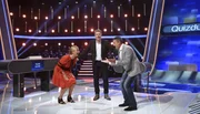Olymp: Andrea Kiewel & Joachim LlambiModerator Jörg Pilawa (M.) mit den Kandidaten des Teams "Show": Der „Let’s dance“-Juror Joachim Llambi (r.) und Moderatorin Andrea Kiewel (l.).Bild: © ARD/Uwe Ernst