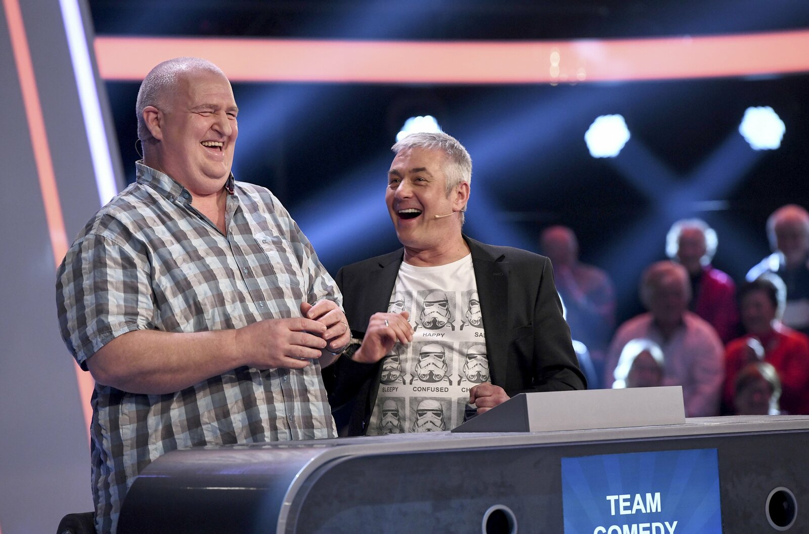 Jürgen von der Lippe & Torsten SträterDie Kandidaten des Teams "Wortwitz": Jürgen von der Lippe (l.), Entertainer und Torsten Sträter (r.), Kabarettist.Bild: © ARD/Lisa Krechting