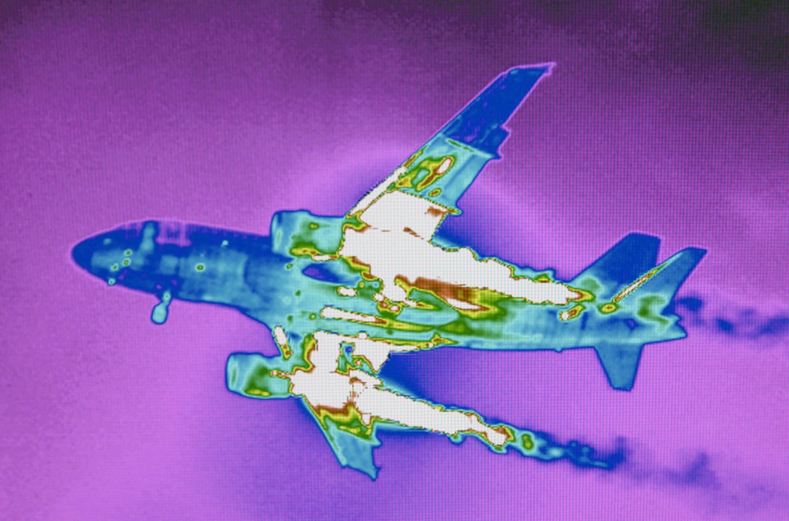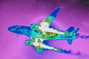 Klima retten? Ohne mich!Flugzeug gefilmt mit CO2-Kamera bei Anflug auf Berlin Tegel.Bild: © ZDF und Radio Bremen/Sebastian Woithe.