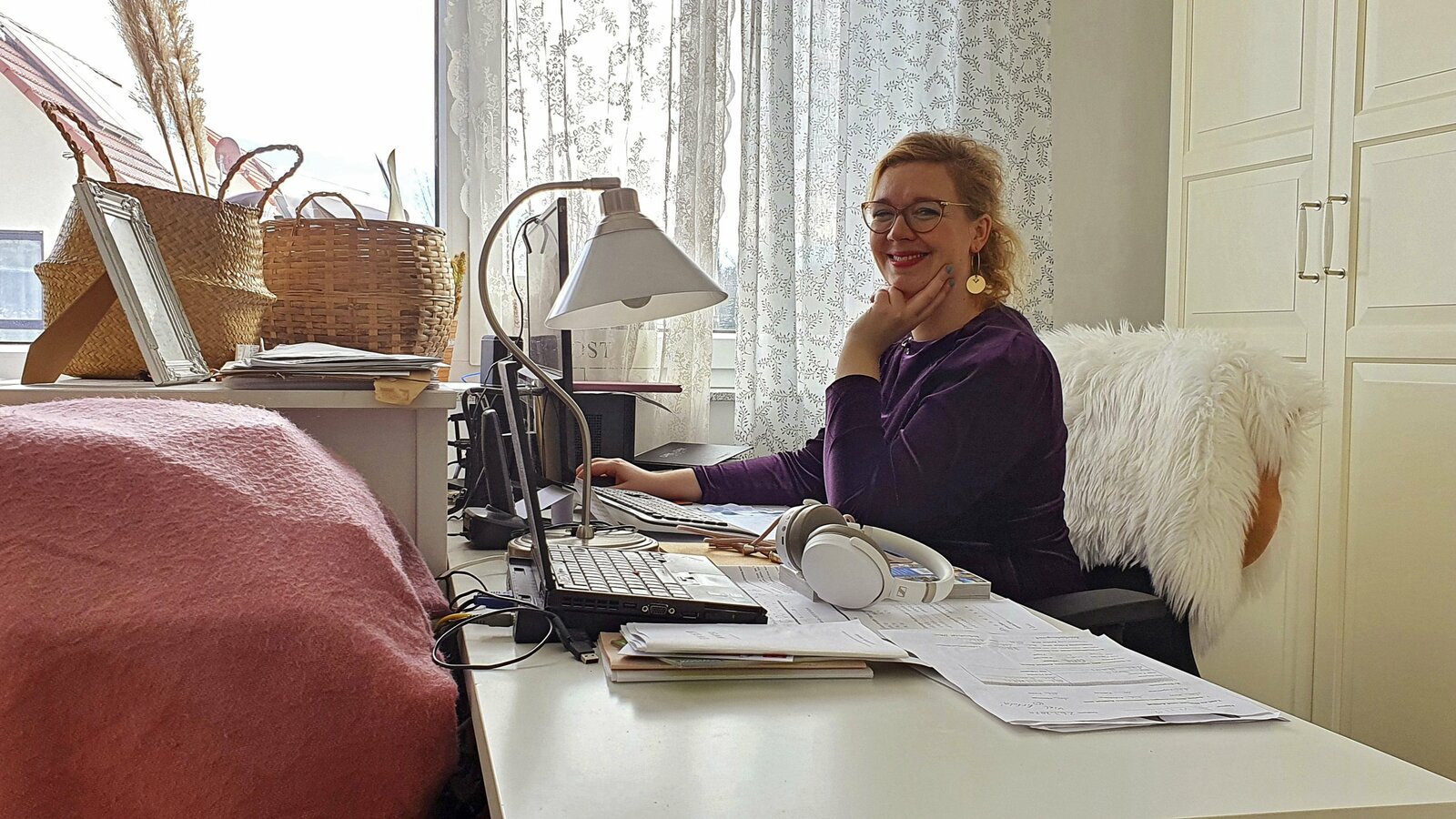 Mutter Priska Lachmann arbeitet als Autorin von Artikeln und Sachbüchern immer im Homeoffice, jetzt ist aber die ganze Familie zu HauseBild: © MDR/Carolin Hillner