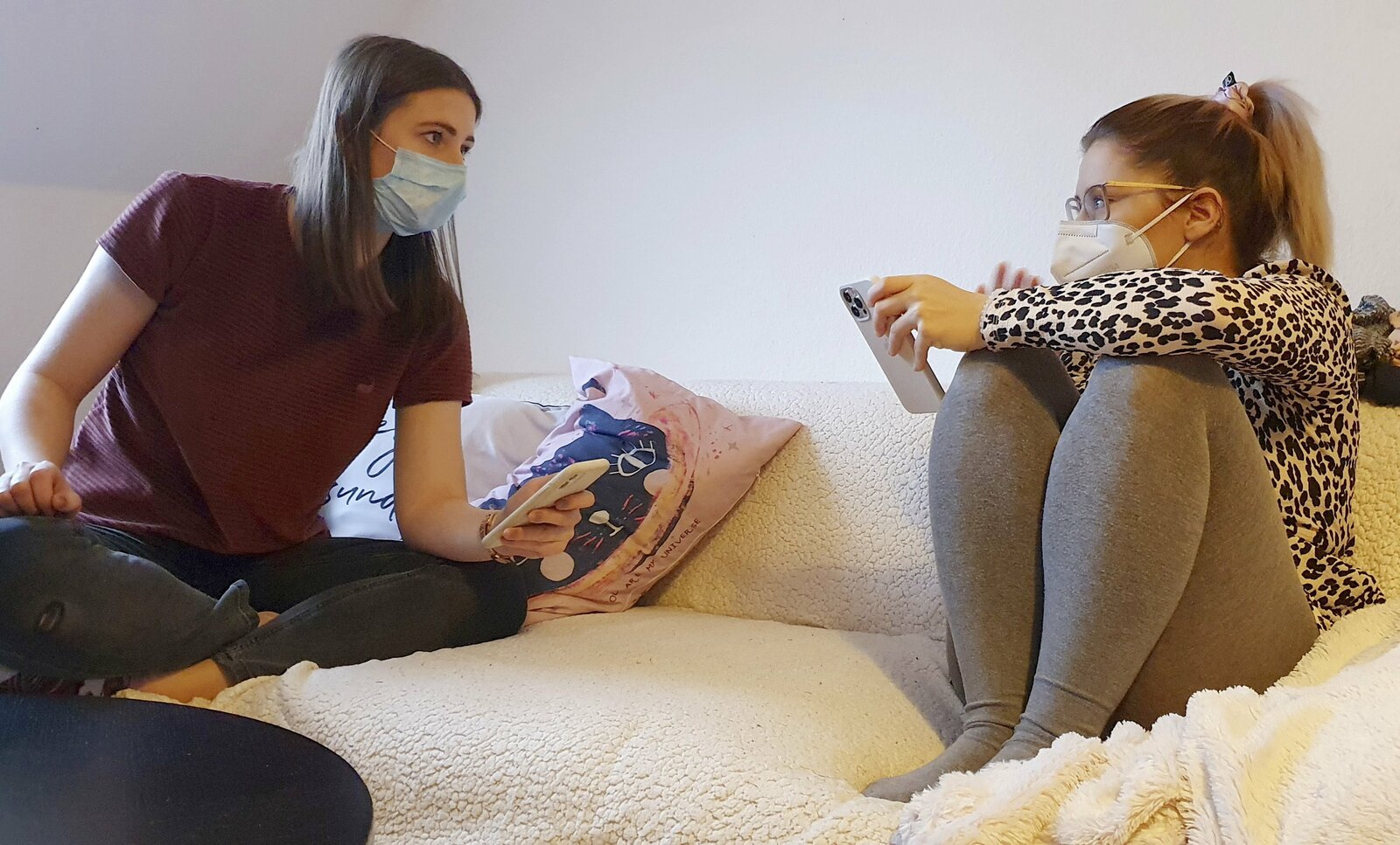 Mit ihrer Freundin Almut kann sie sich austauschen und ihre Sorgen besprechen. Die arbeitet als Gesundheits- und Krankenpflegerin im Krankenhaus, ist auch erfolgreich auf Instagram und ist selbst Zweifachmutter. Auch sie kennt den Konkurrenzkampf unter Müttern aus eigener Erfahrung.Bild: © MDR/Carolin Hillner